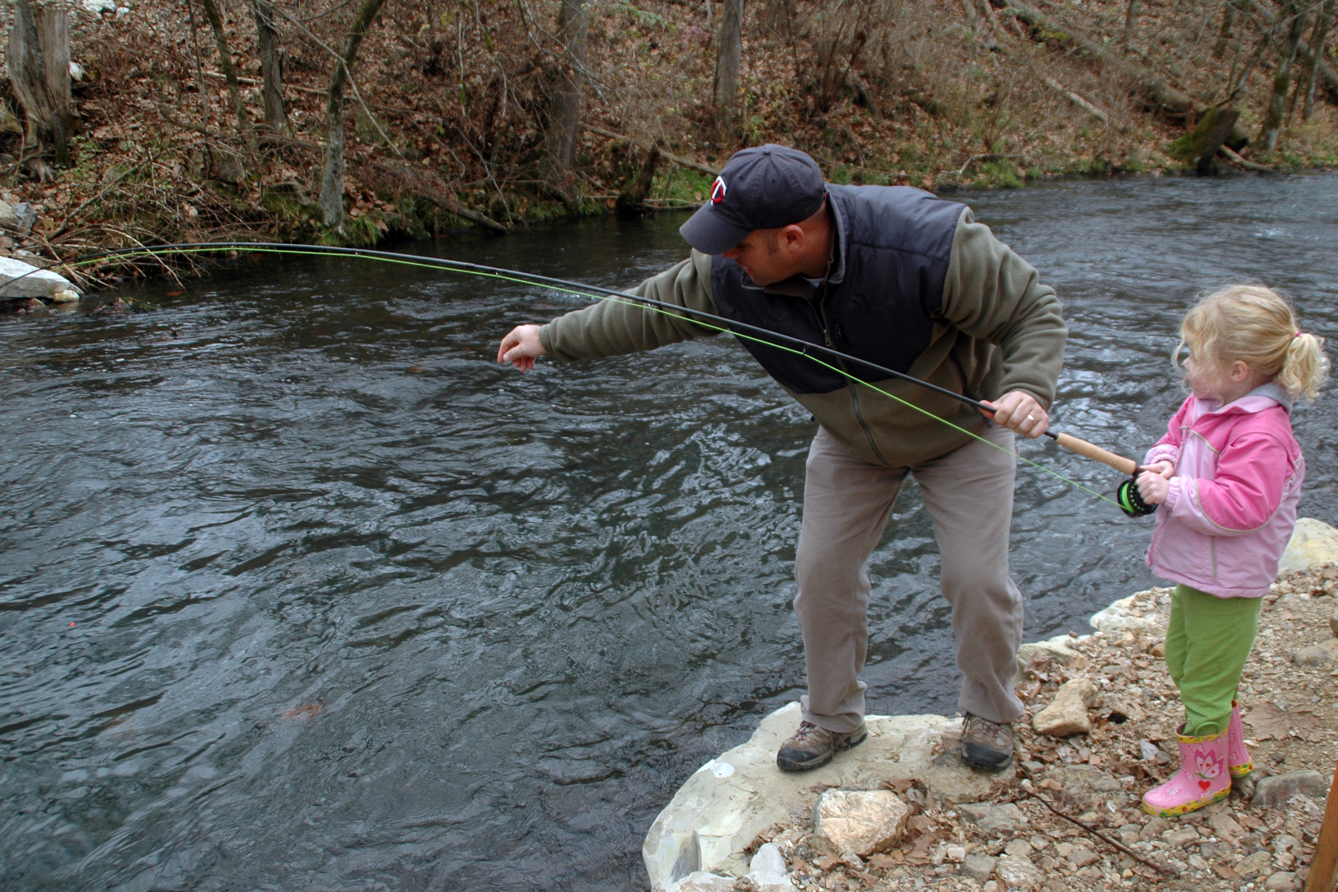 Unfortunately, even after upgrading to a real fly rod and getting lots of help from her daddy, she still didn’t catch a thing.