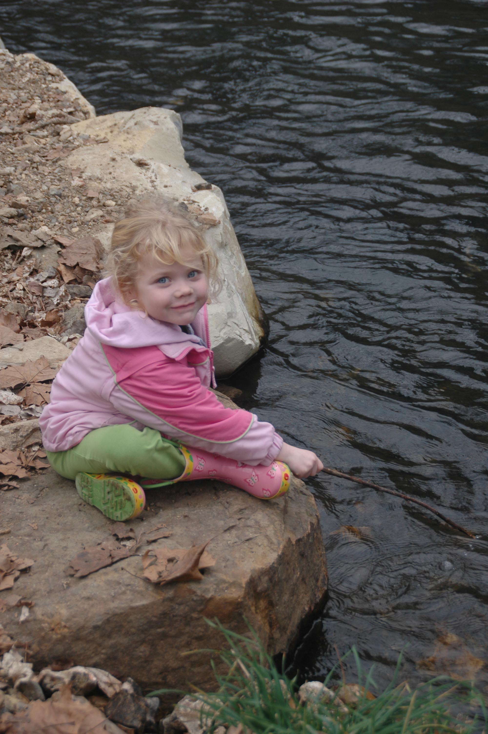 Laurel’s stick in the water didn’t catch a thing.