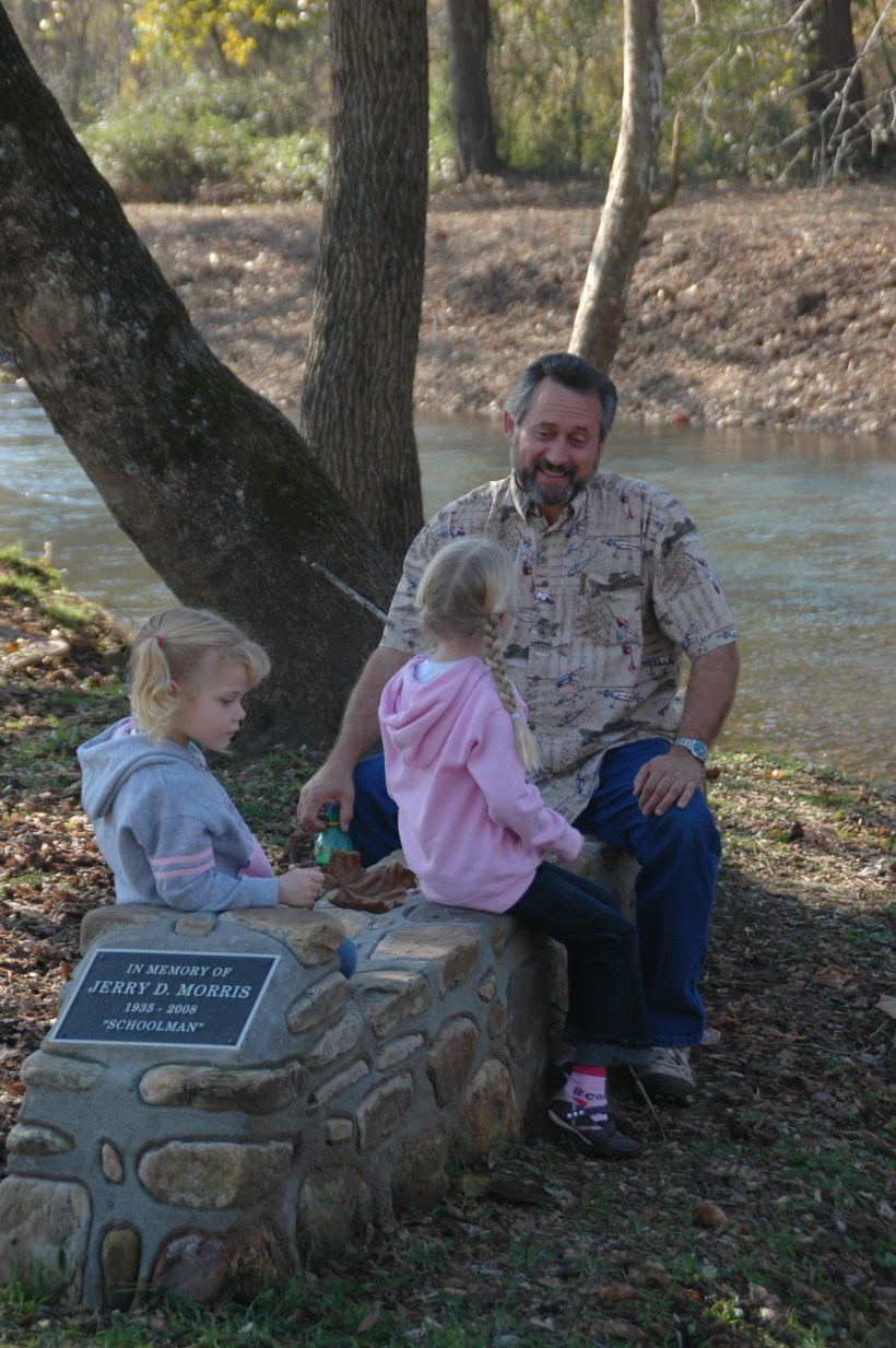 The big highlight of our trip to Arkansas was visiting Papa Larry’s new getaway home in the northern part of the state. We spent the weekend with him, mostly exploring the area. Very nearby was the White River, where we played with leaves in the water.