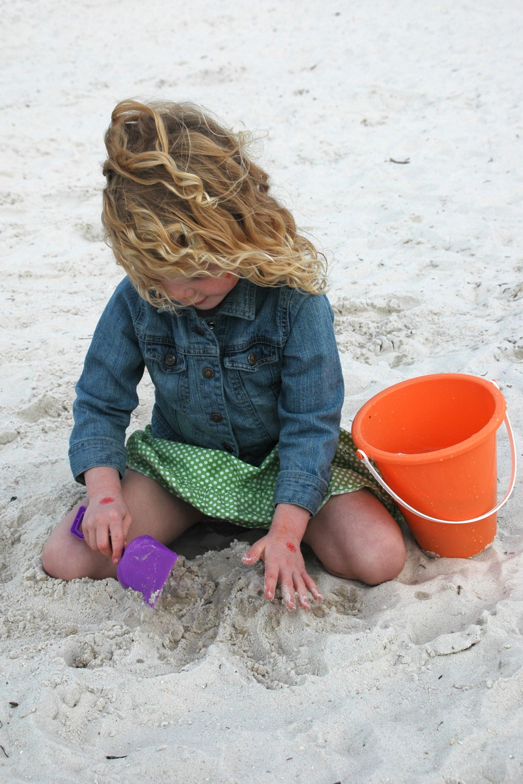 If you read this earlier post about Linnea collecting seashells, you might have wondered if Laurel was at the beach at all. Well, she was. But seashell searcher she is not. For her, building sand castles was the most fascinating part of the beach.