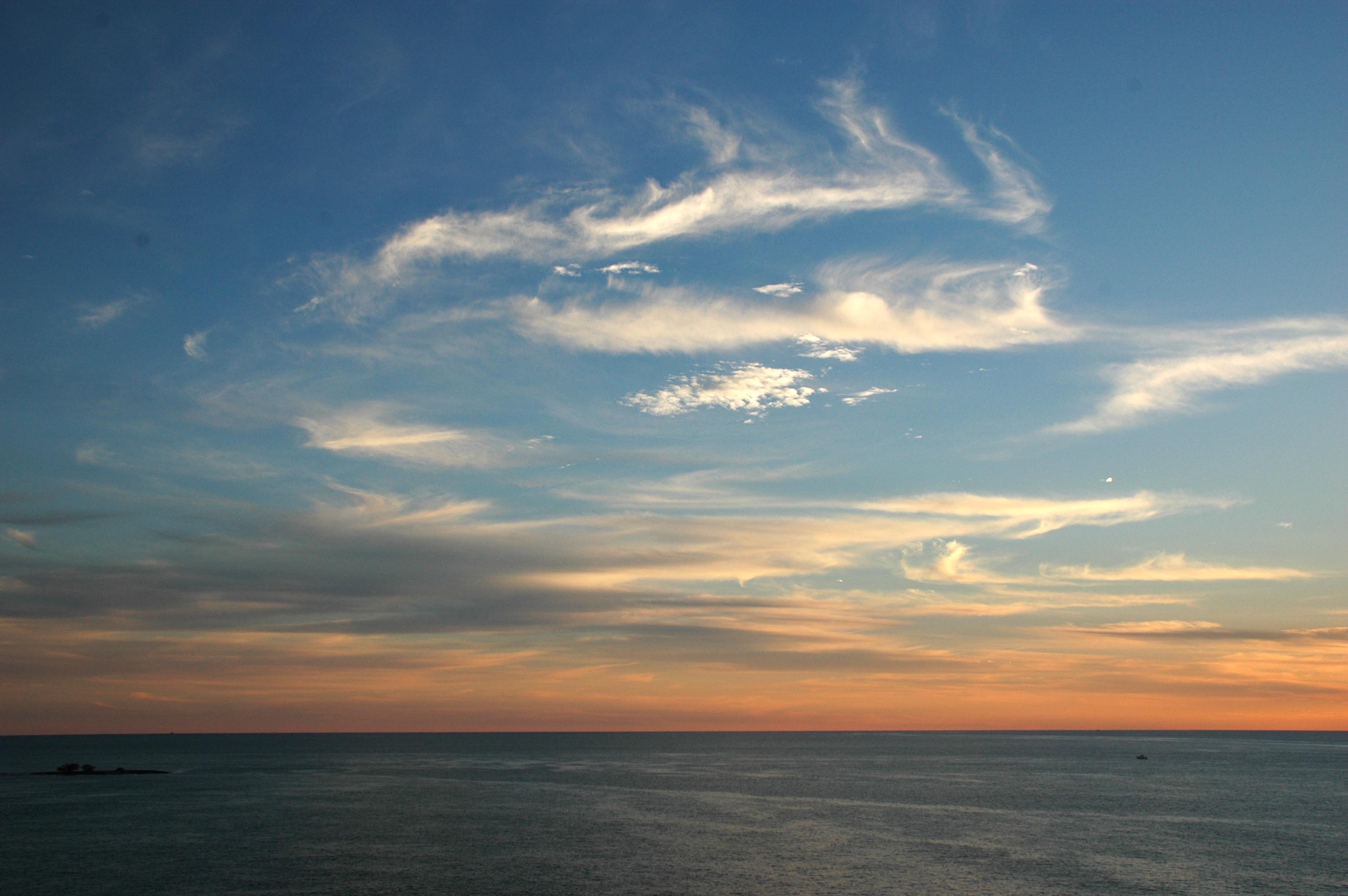 The bridge was high, so the palm trees on the beach below looked misplaced. But the sky! It was a glorious combination of clouds and light over the vast ocean.