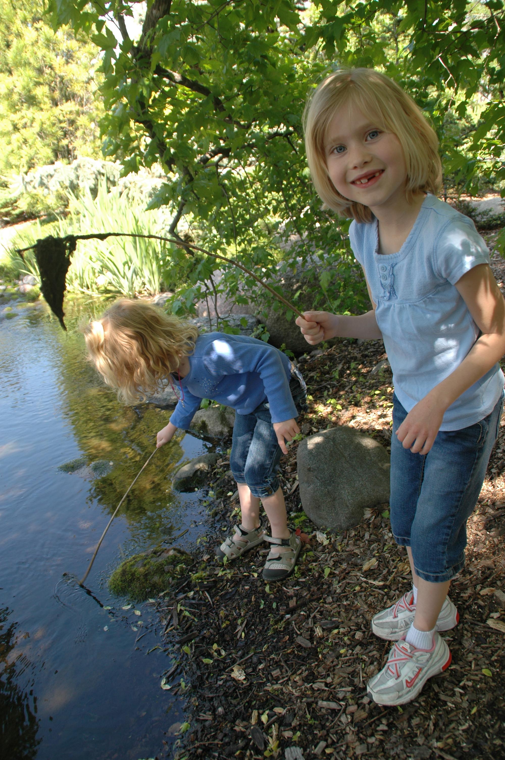 At the Arboretum last Friday, while Linnea had her nose in the lilacs, Laurel had a stick in hand and repeatedly insisted that we hurry up. She needed to find some water so she could go “fishing” with her stick. Truth be told, Laurel is totally and completely obsessed with water. But you know that already if you read my earlier post about Our Flower Girls.