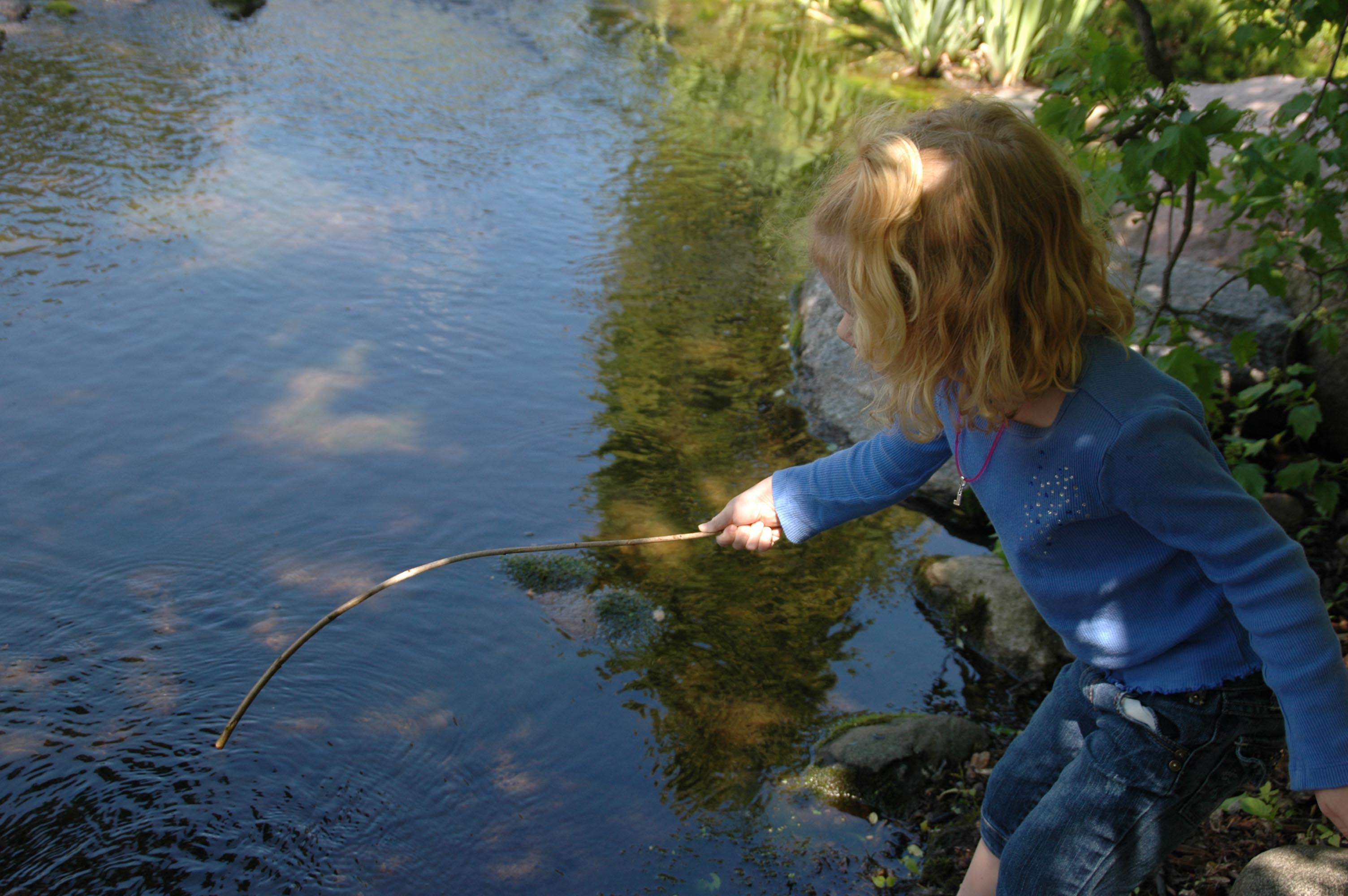 This stick was perfect for {pretend} fishing, she said, because it had such a nice curve to it.