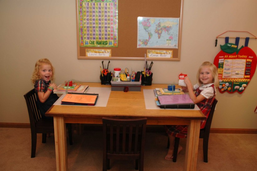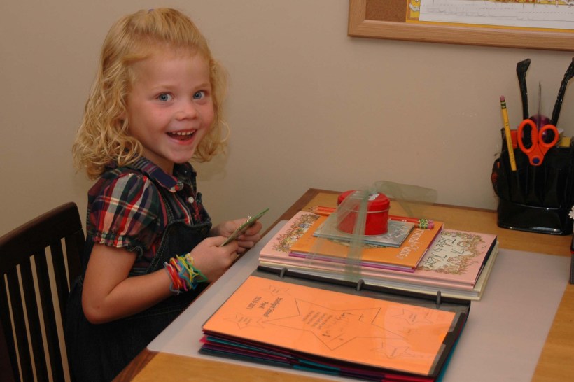 I goofed. This month I got so busy posting about Laurel’s expressiveness, posting photos on Facebook, posting about the Dead Sea Scrolls, and posting about the apple orchard trip that somehow I skipped blogging about our first day of school!