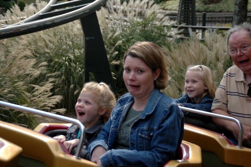 Daddy and I were hamming it up — it’s just a kiddy-sized rollercoaster.