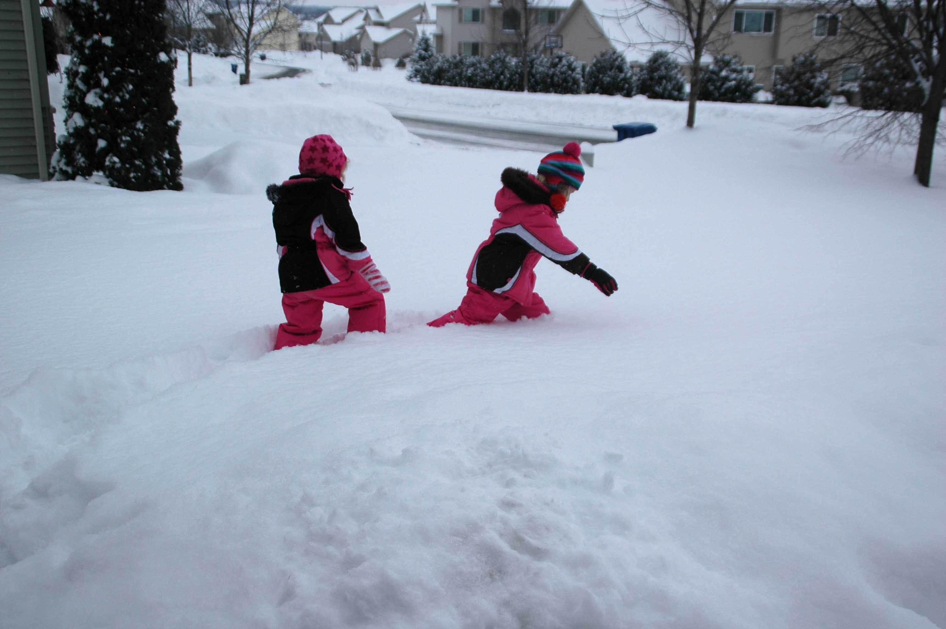 The deep snow in the yard is a little challenging to wade through, but my little Minnesota girls plow right into it anyway.