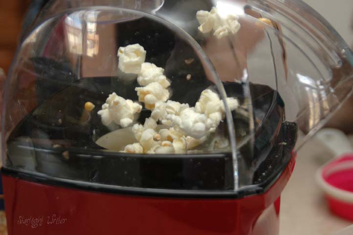255. a kitchen spilling over with popcorn, popcorn, and more popcorn