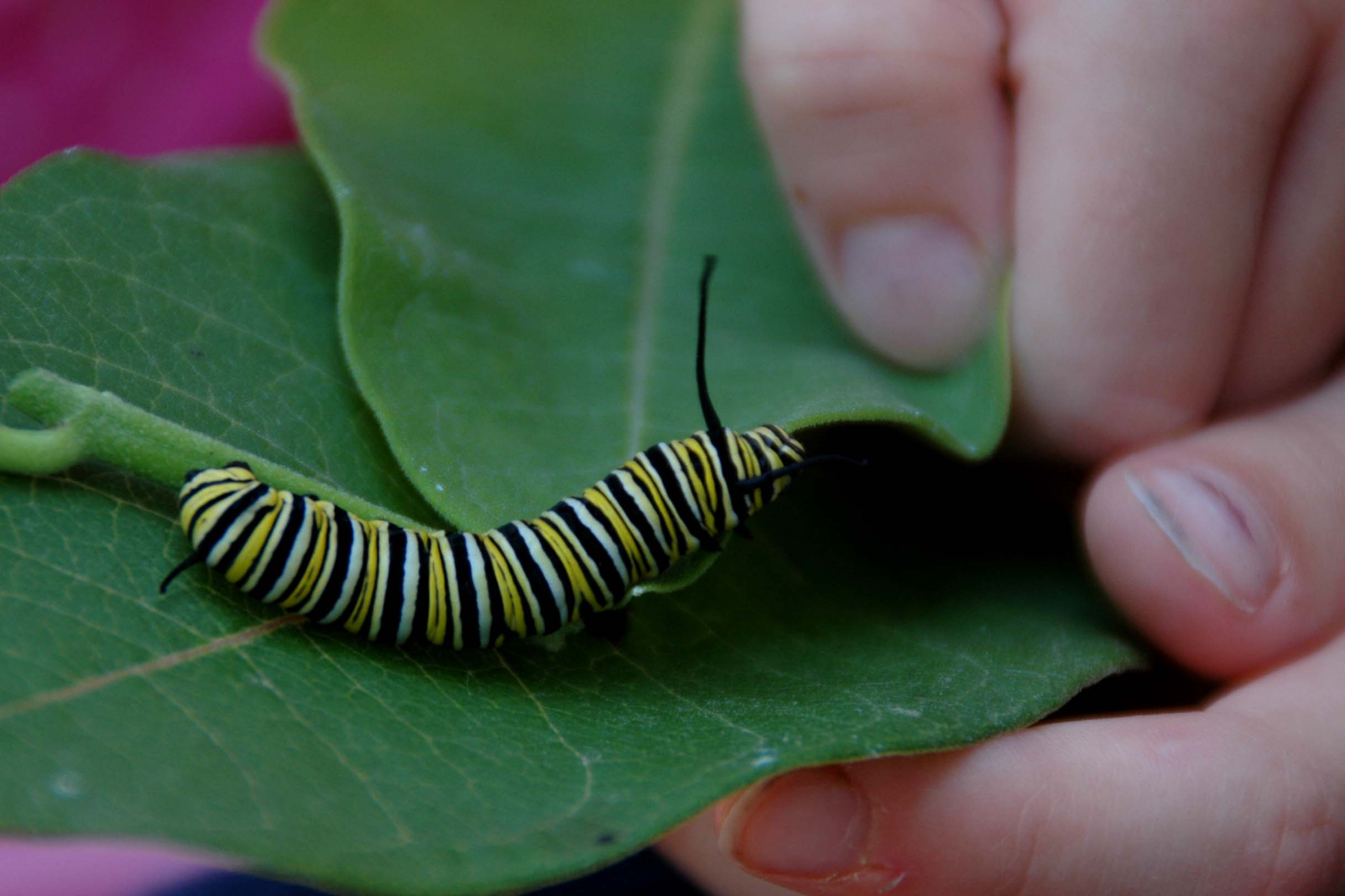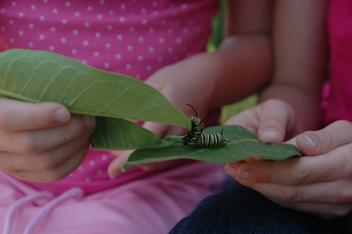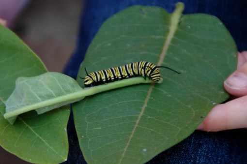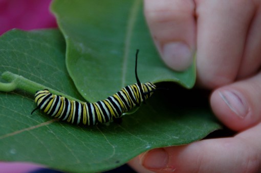 Last June we acquired five monarch caterpillars from another homeschool family. We fed them milkweed — which wasn’t easy to find — and we watched them eat, eat, eat.