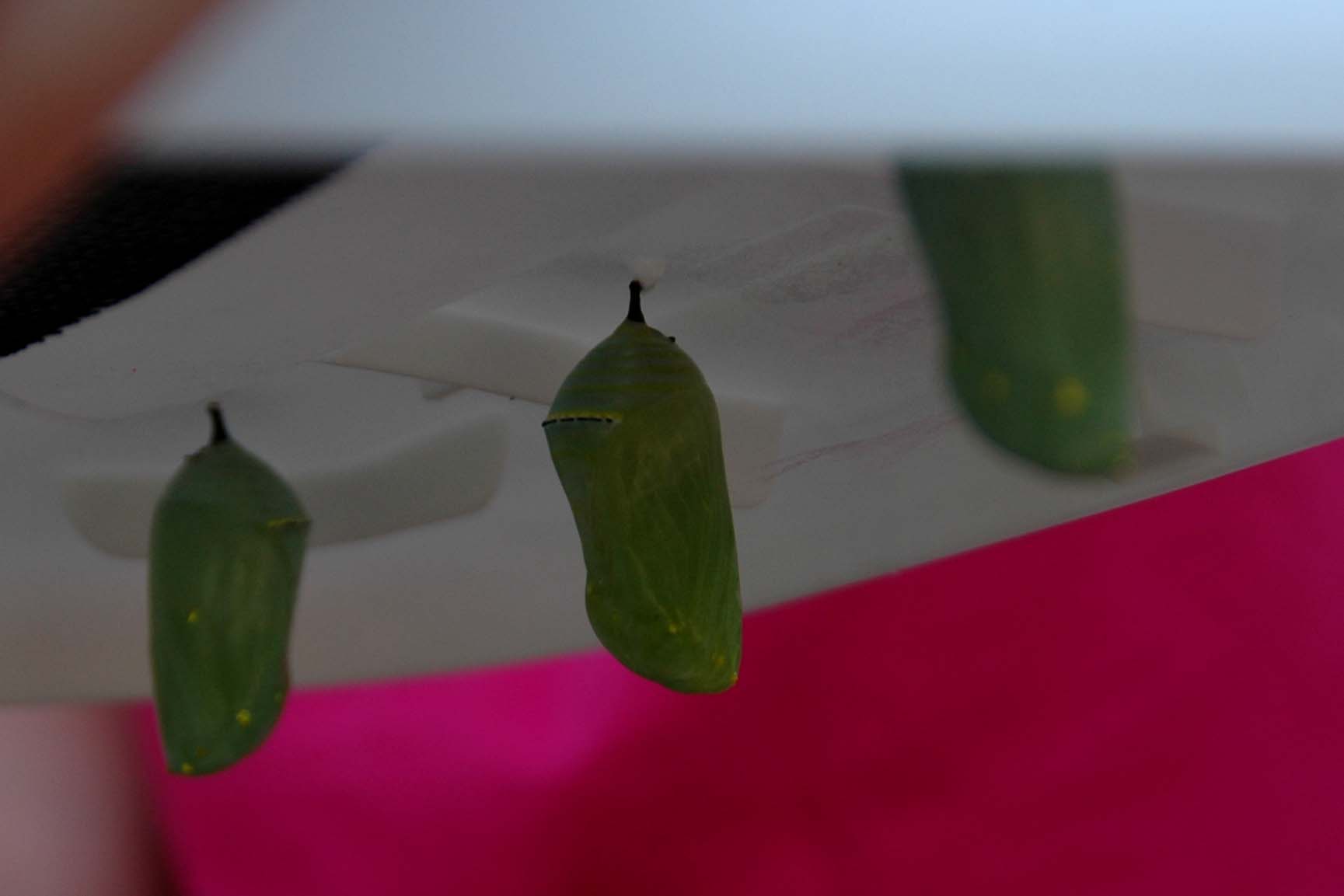 The girls’ favorite caterpillar was named “Tiny Corn.” She was the last to go into her chrysalis.