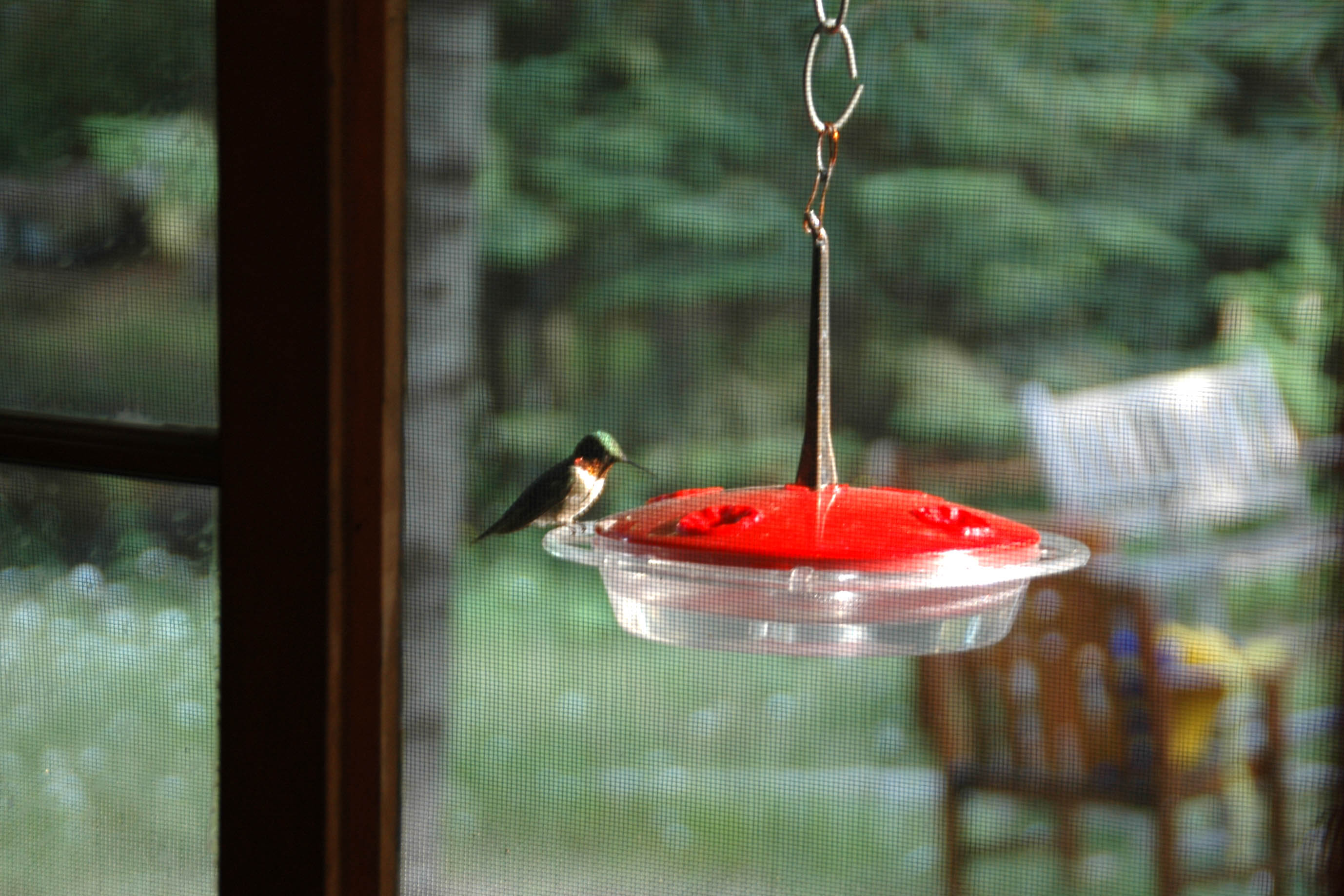 13. Hummingbirds darting to and fro while chickadees sing cheerfully.