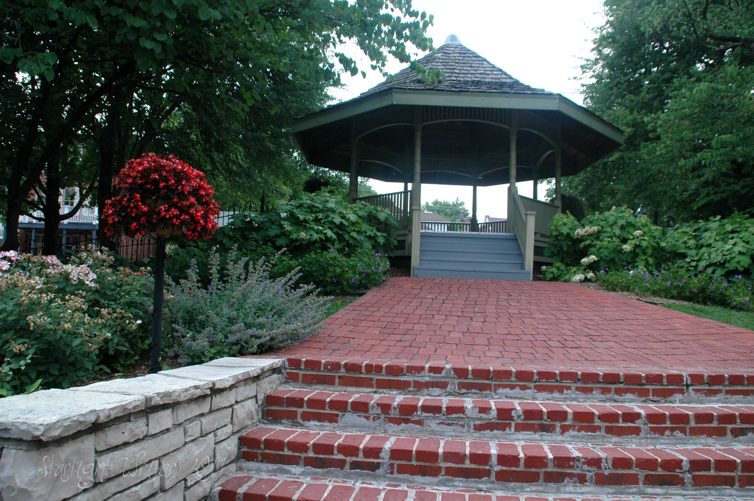 573. the quaint brick streets of St. Charles — lined with gas lamps, flowers, little shops and romantic restaurants