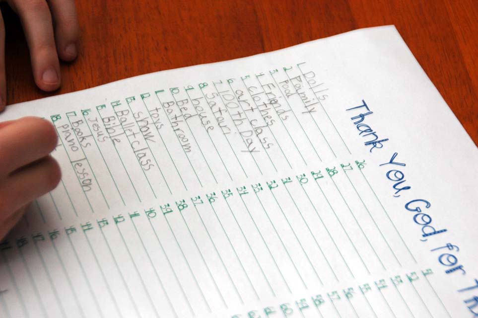 I gave the girls this special sheet to help them start counting and giving thanks for 100 gifts from God. (You can download the PDF to use with your children if you click here.)