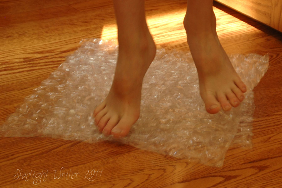630. shouts of glee as little feet bounce happily on the bubble wrap
