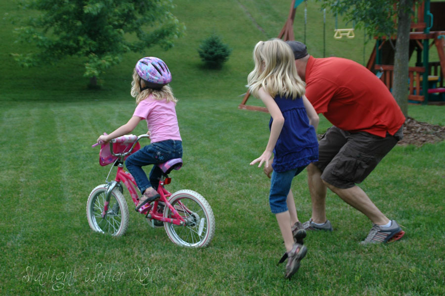 632. the cheering big sister and loving daddy, so eager to help and encourage her