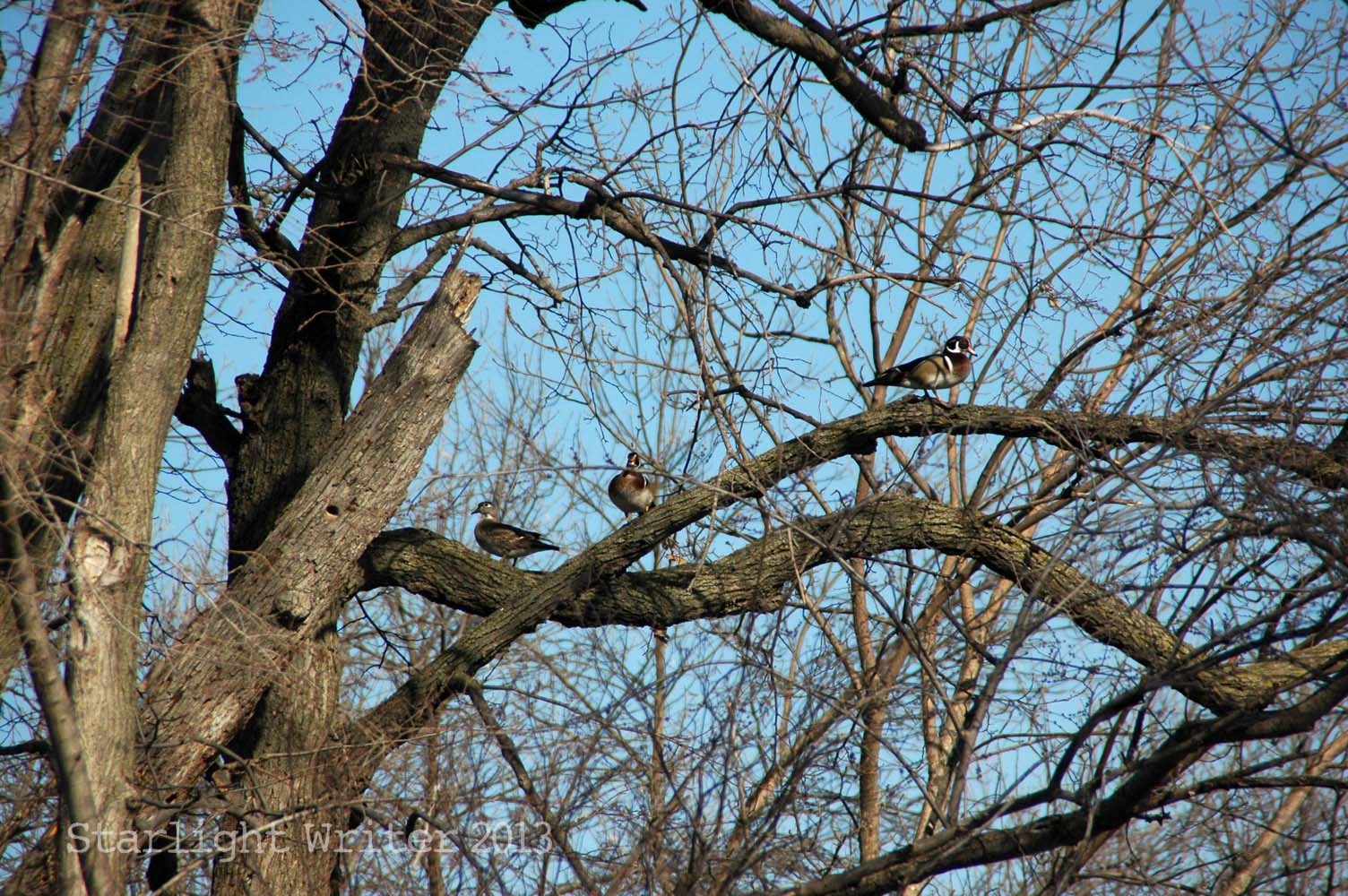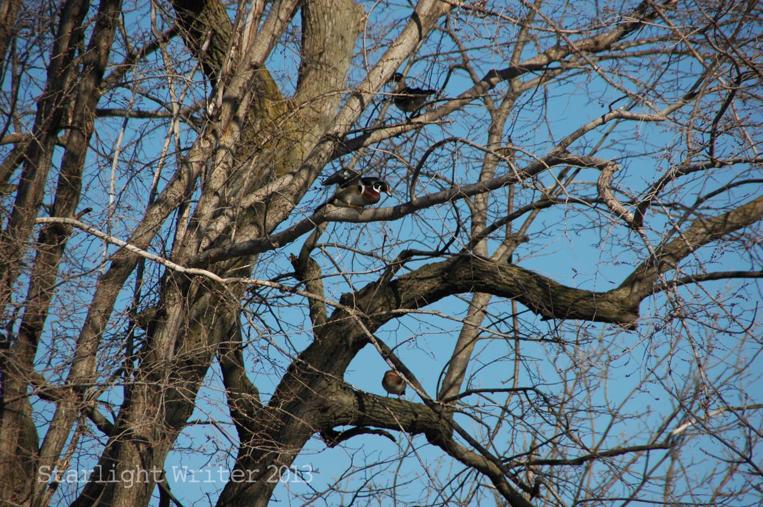 A few days later the snow melted again, the sun came out, and the wood ducks flocked high up into the next-door neighbors’ trees, hunting for the perfect nesting trees and basking in the late morning sunshine.
