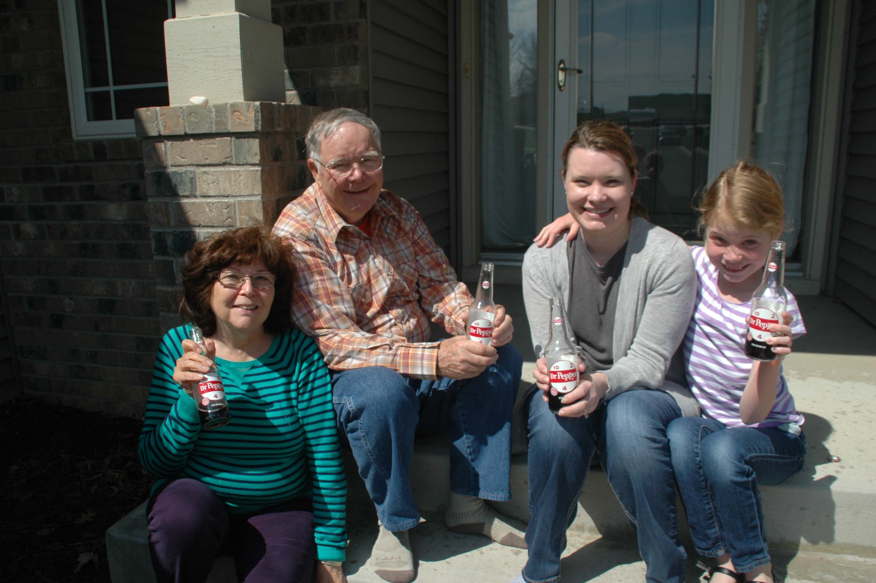This spring when my dad and step mother came to visit, I had in my refrigerator four old-fashioned glass bottles of Dr. Pepper with the “10-2-and-4” logo on them. We shared an afternoon Dr. Pepper break on the front porch together.