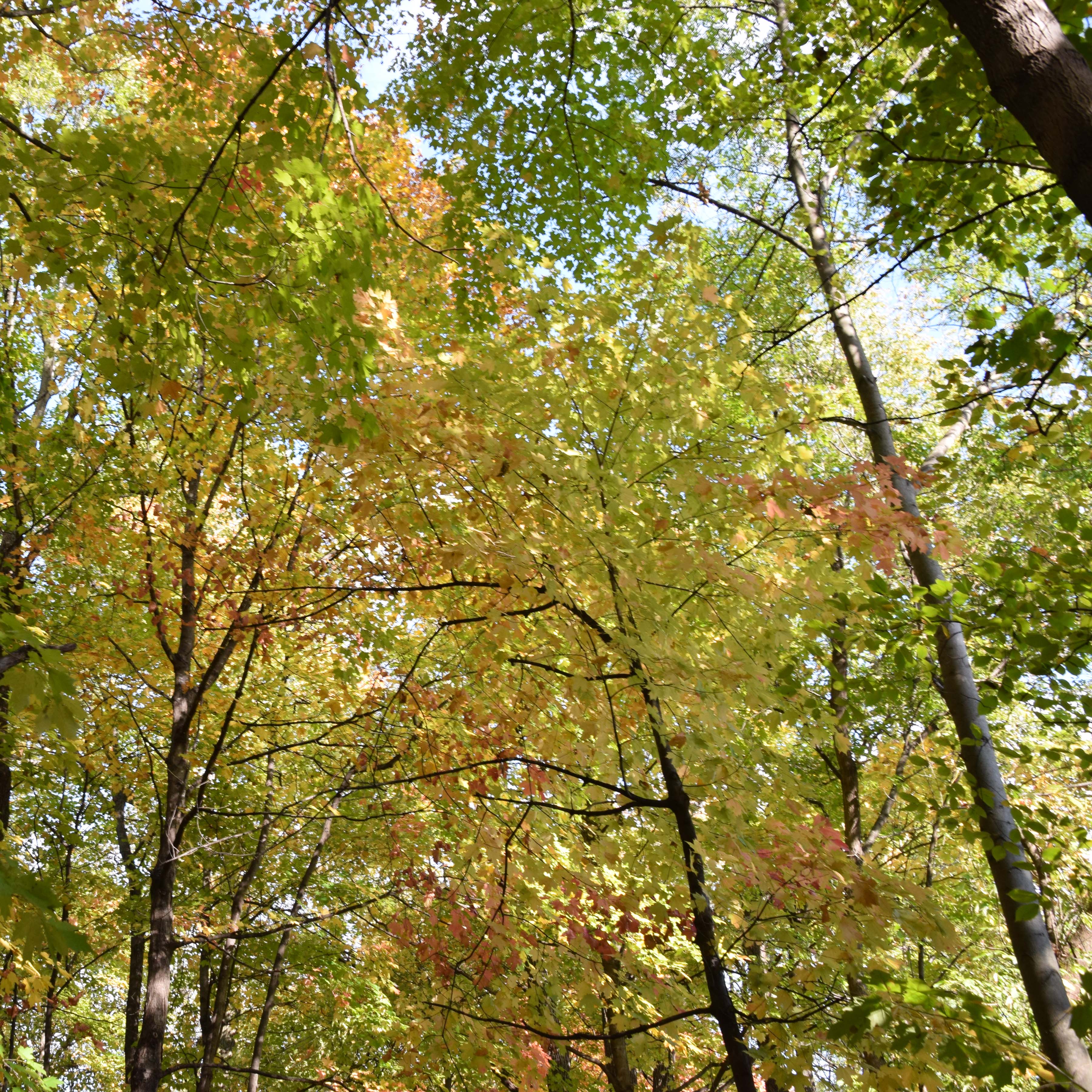 This was our first visit to this particular orchard, and despite having a map and instructions for where to find which specific apple varieties, we kept heading off in the wrong direction and then needing to turn around and head off in the right direction. We never truly got lost in the woods. And certainly when the woods look this astonishing, nobody complains.