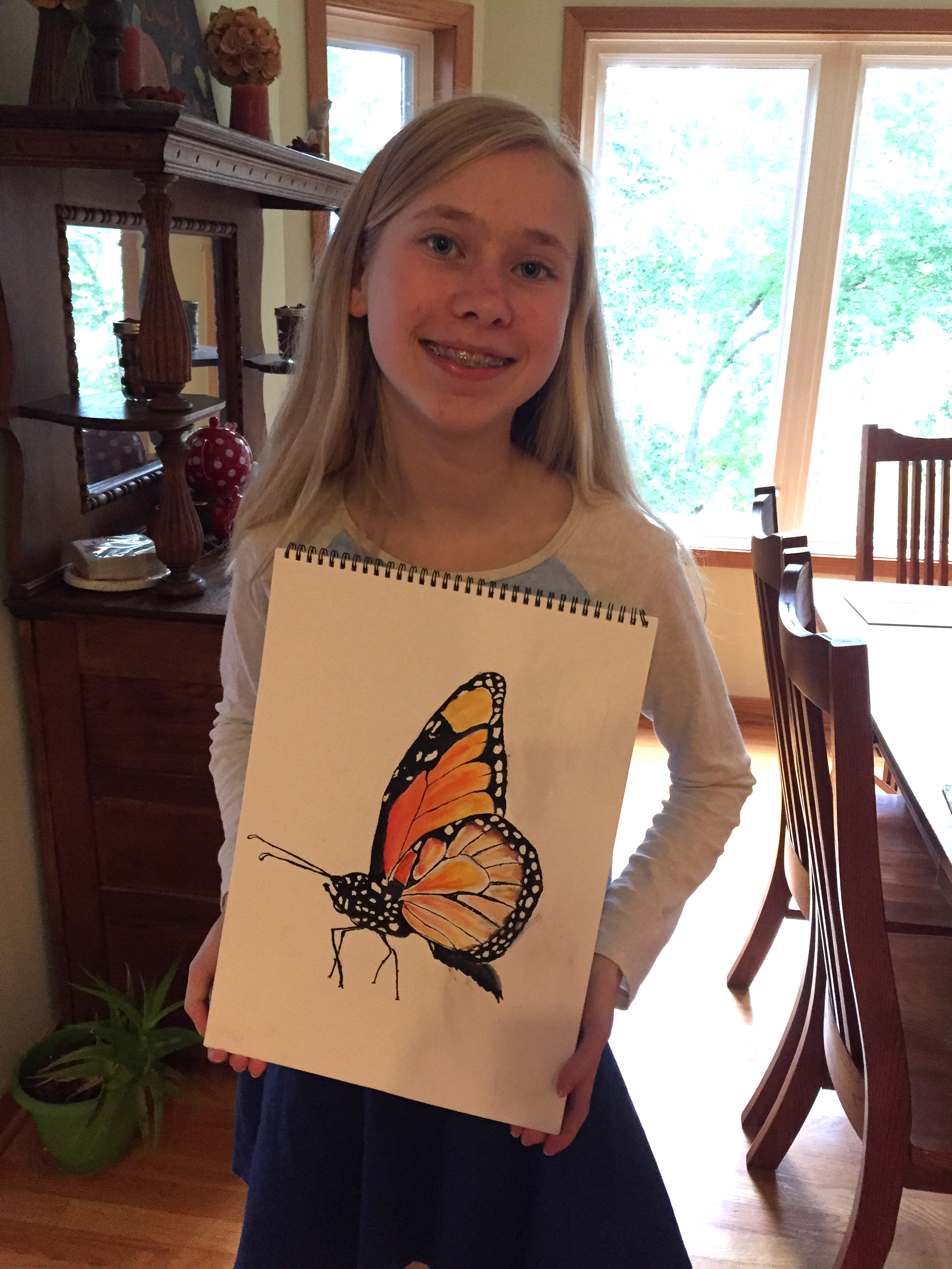 Jim Gilbert, a man who lives in our little town, is a naturalist and former science teacher. About 50 years ago, he and a few student volunteers tagged monarch butterflies at the Minnesota Landscape Arboretum as part of an extensive research project to figure out where the monarchs go in the winter. One of the monarchs Gilbert’s students tagged was later found in Mexico, about 2,000 miles away, by Canadian zoologist Fred A. Urquhart. This was a monumental discovery because prior to that, scientists were baffled by the mystery and had been specifically looking for answers for 40 years!