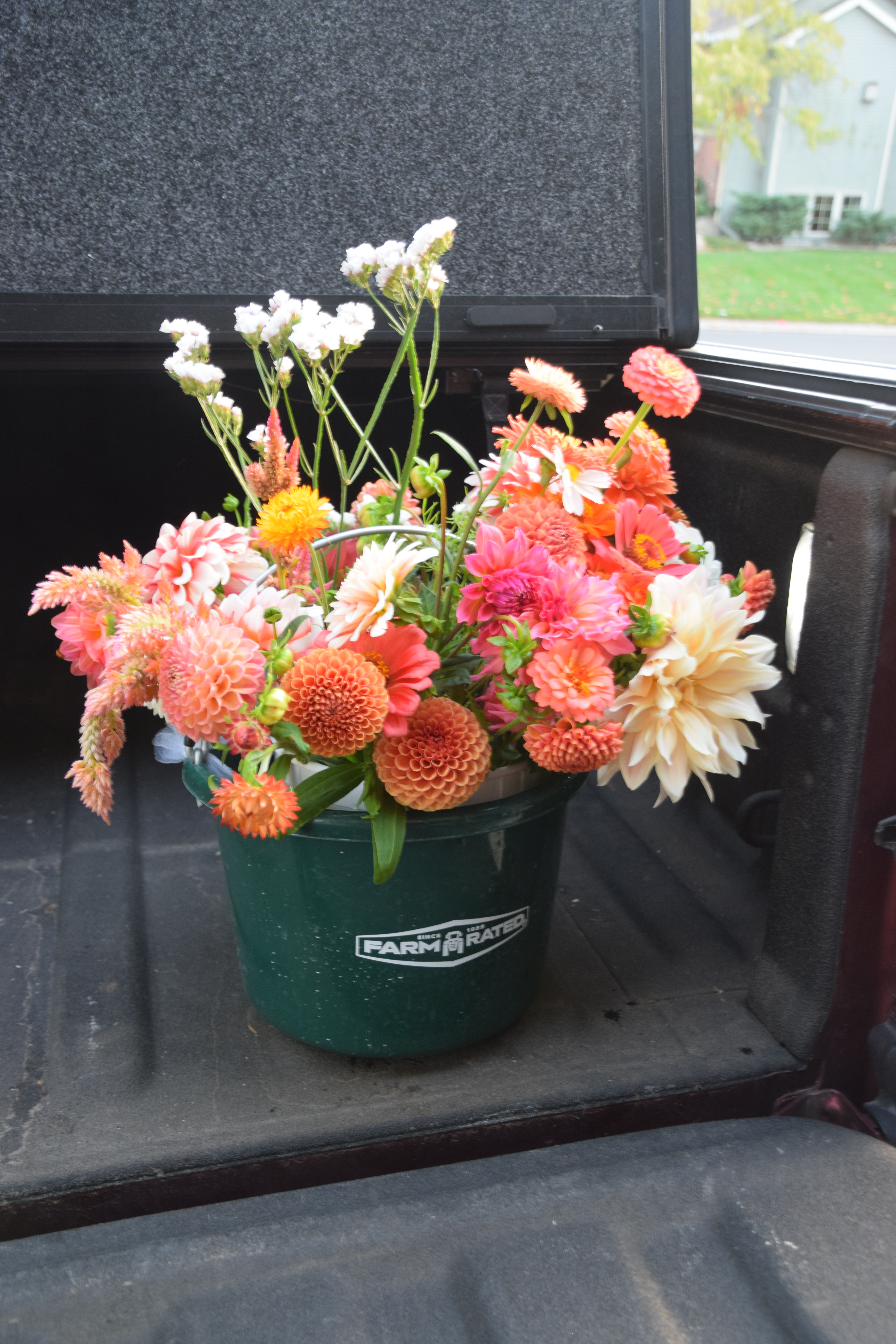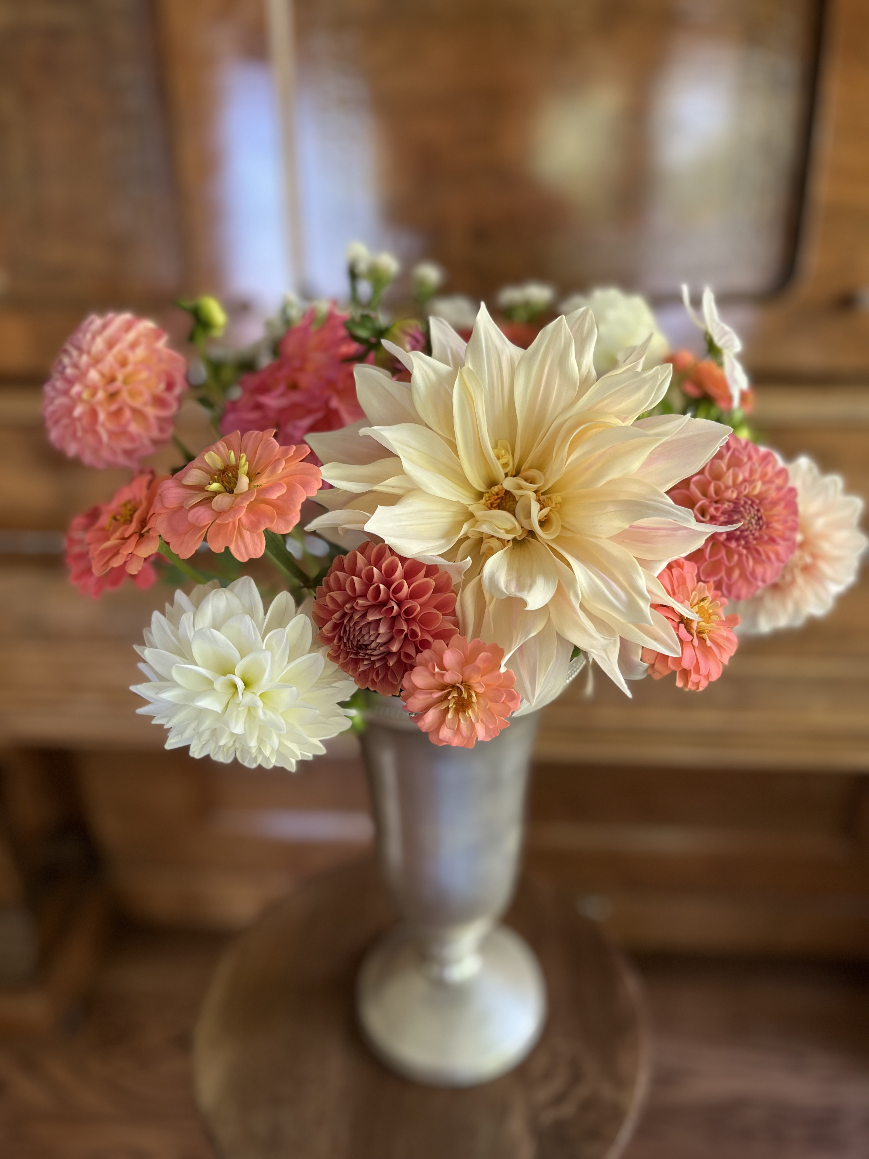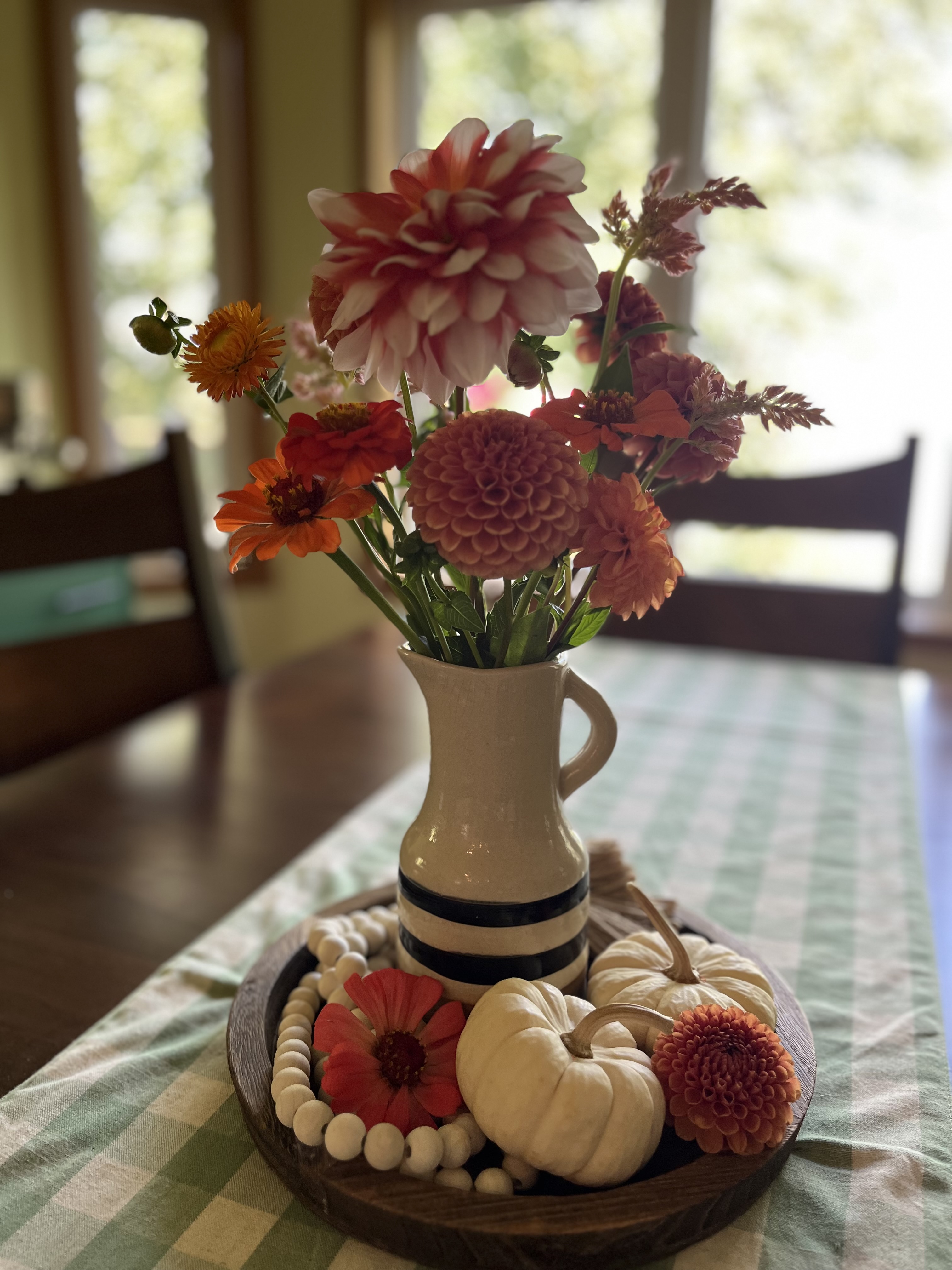 How can one not be completely dazzled by the dahlias this fall? And the zinnias, too! Enjoying the unusually warm weather, my hubby and I took a little field trip to a nearby flower farm. We’d never been there before, but a friend of mine had mentioned it when she shared some lovely stems she had picked there.
