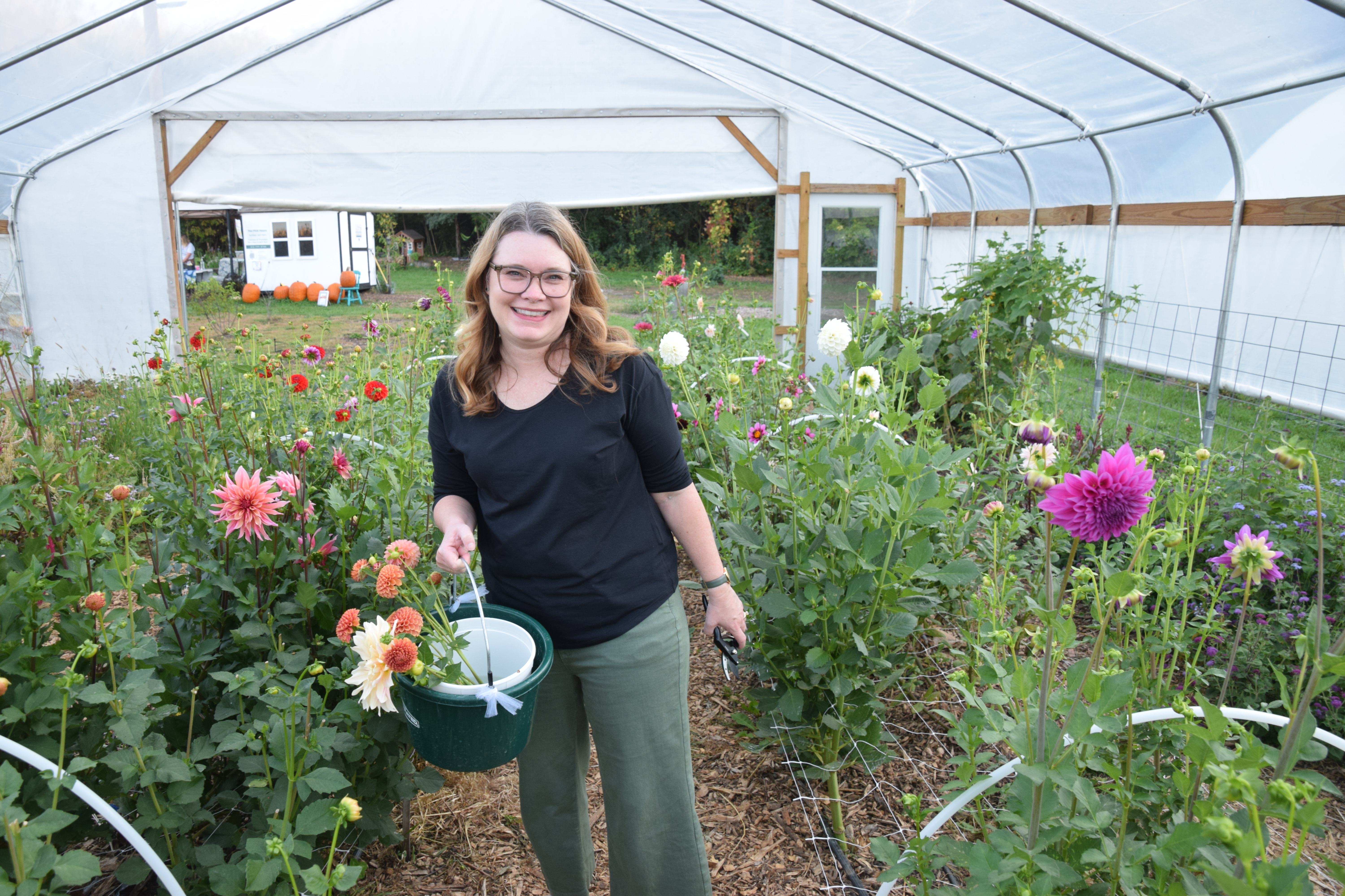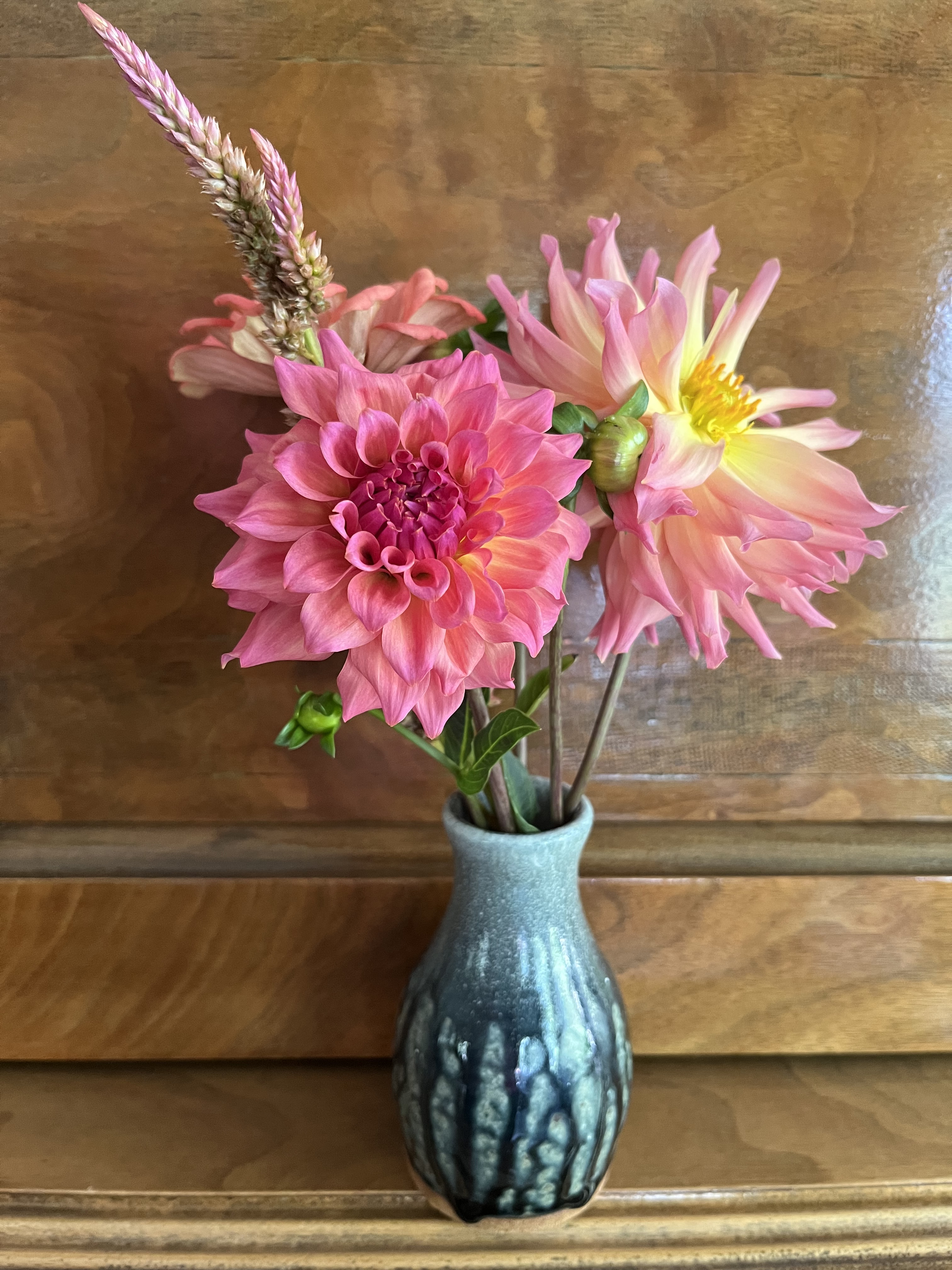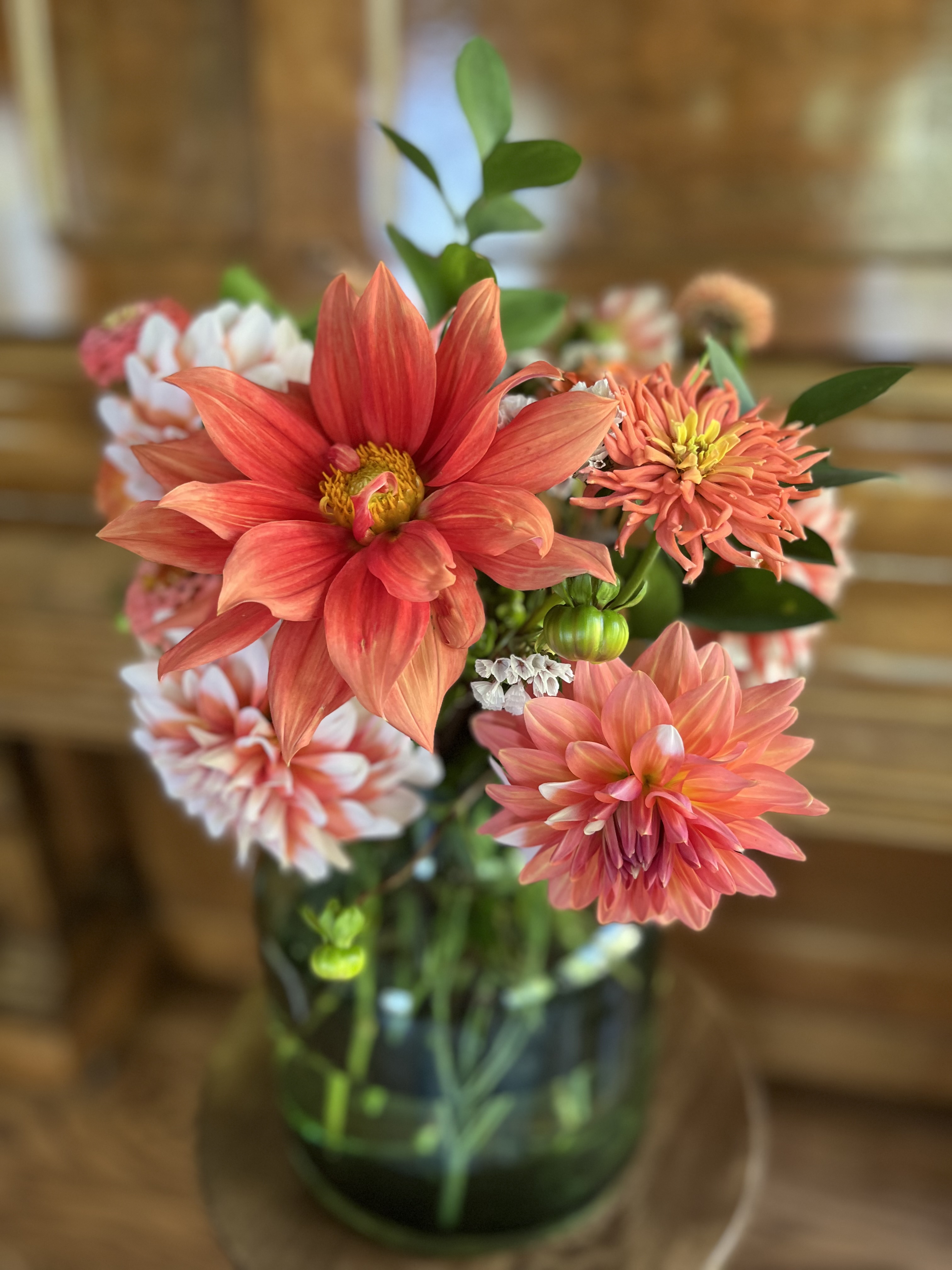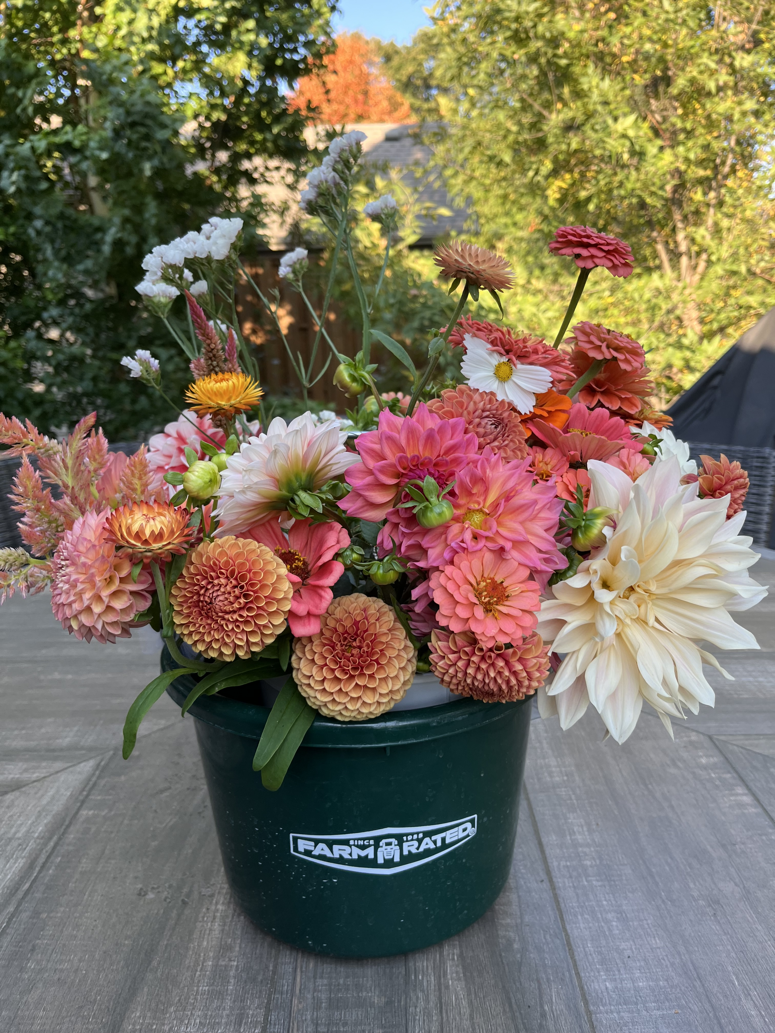 How can one not be completely dazzled by the dahlias this fall? And the zinnias, too! Enjoying the unusually warm weather, my hubby and I took a little field trip to a nearby flower farm. We’d never been there before, but a friend of mine had mentioned it when she shared some lovely stems she had picked there.