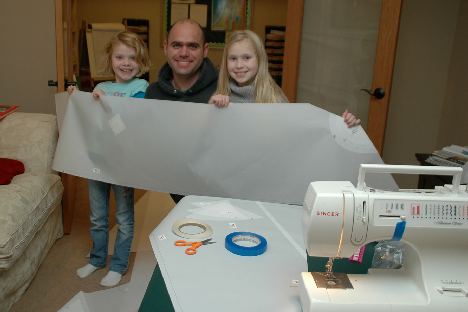 During the winter, they sewed canvas together to make Ruby’s sail.