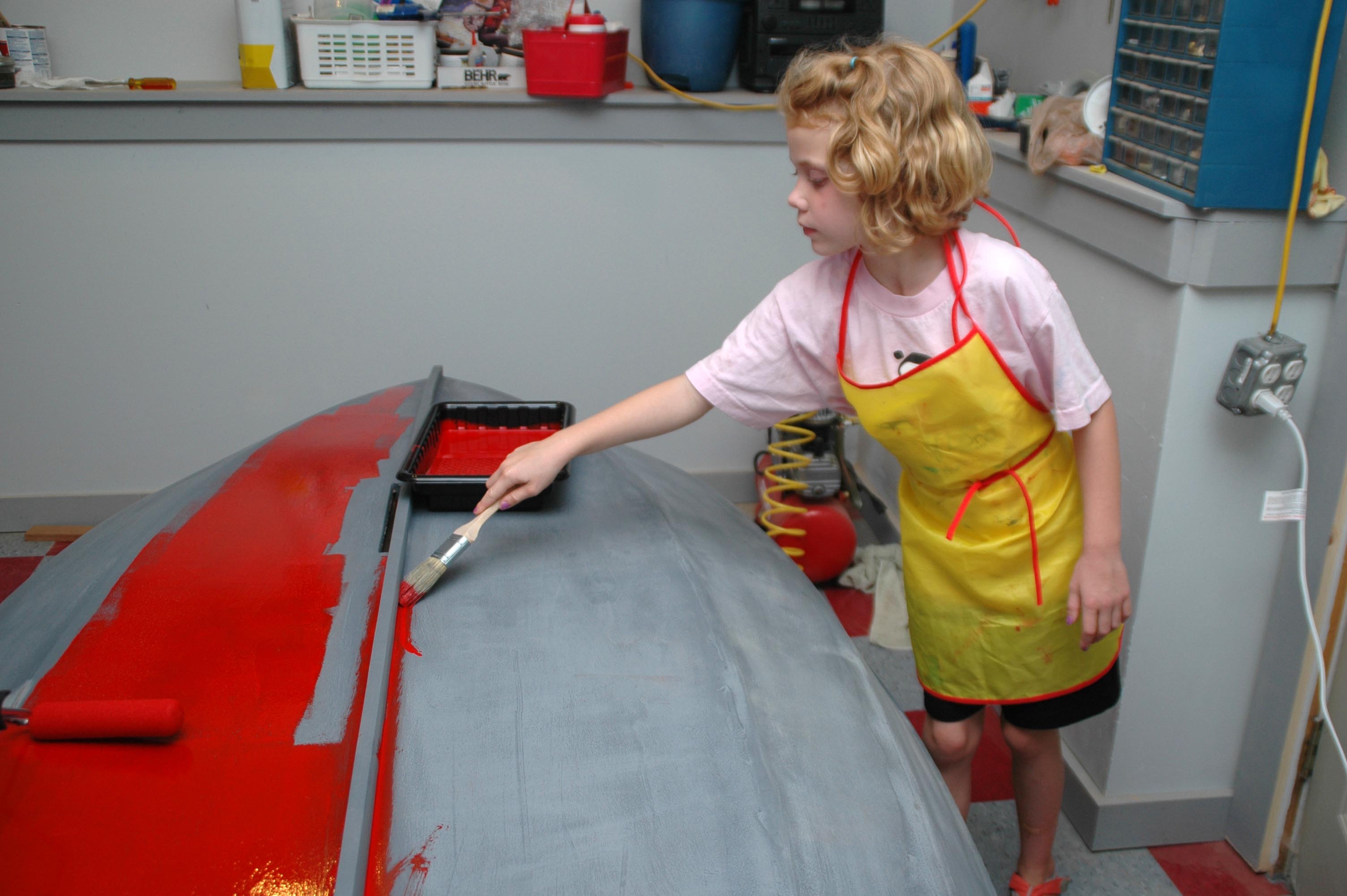 Hearing the story and imagining the worst, I really wondered what our daughters, then ages 6 and 9, would think of their grandpa’s dumpster discovery. But at the dinner table that night when my elated husband relayed the news, the two girls excitedly adopted the project and confidently declared they would paint the little boat red and name it “Ruby.”