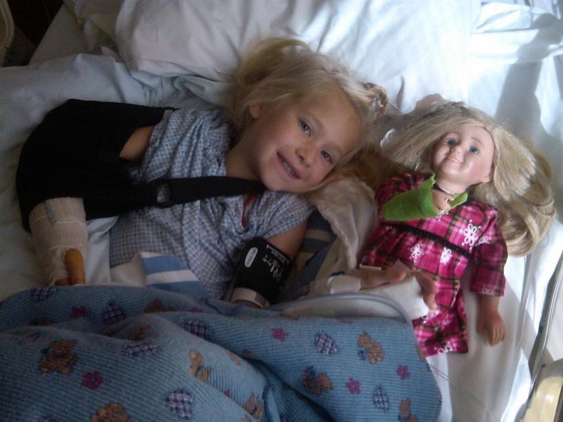 “Here are the broken spots,” the tall doctor proclaims as he points to X-rays of my firstborn’s forearm, six weeks after her infamous fall on the playground.