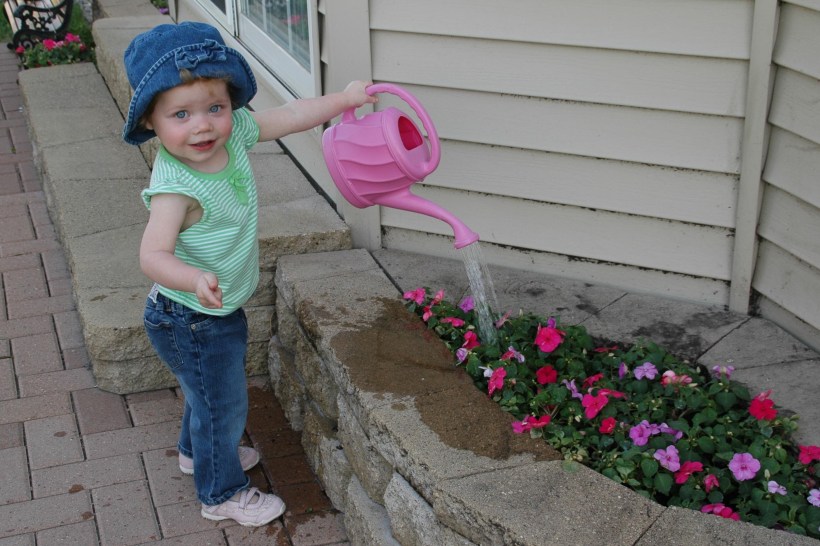 5. Here’s a new, summery way to mop the kitchen floor: Shut only the screen door while your 7-year-old waters the flowers on the patio. She’s never been a wild child, but give her a garden hose with a spray nozzle and WATCH OUT!