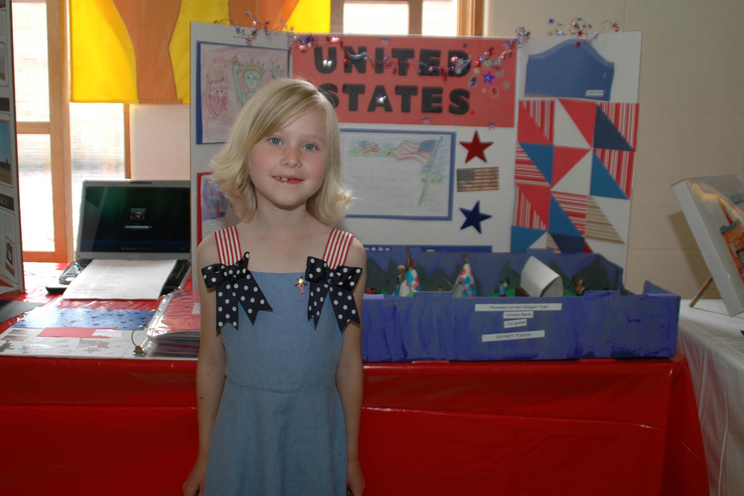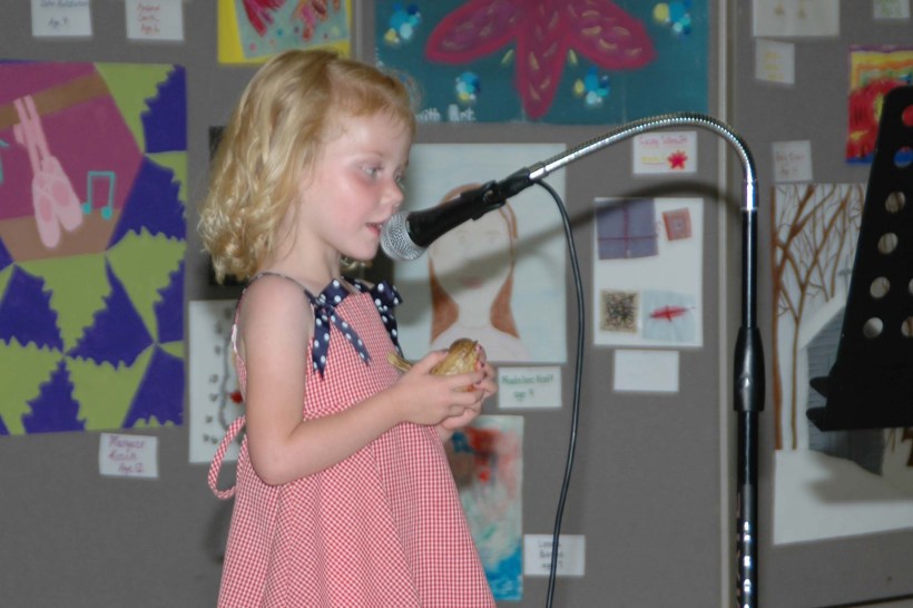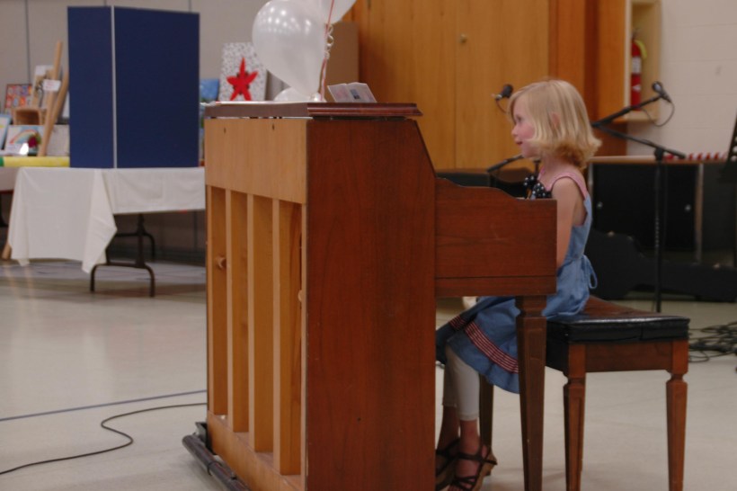 9. Laurel’s table manners must have drowned in the pool this afternoon. At supper after swimming lessons, she kept wiping the jelly on her fingers on her clothes, in her hair, and seemingly everywhere else but her napkin. Ick! “Don’t wipe it on your dress!” Michael yelled. Big sister Linnea chimes in, on Laurel’s behalf, “It’s actually a skirt, Daddy.”