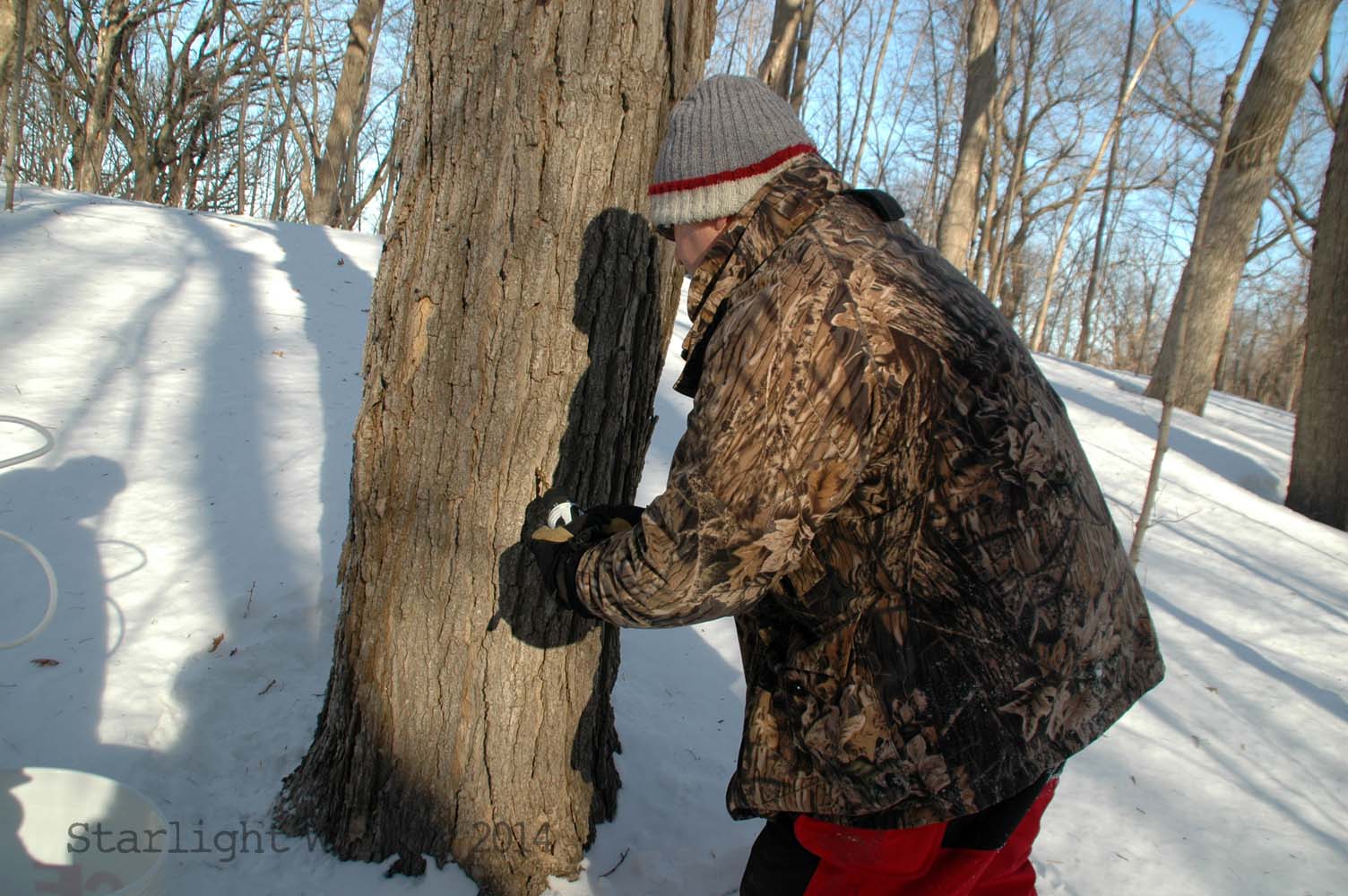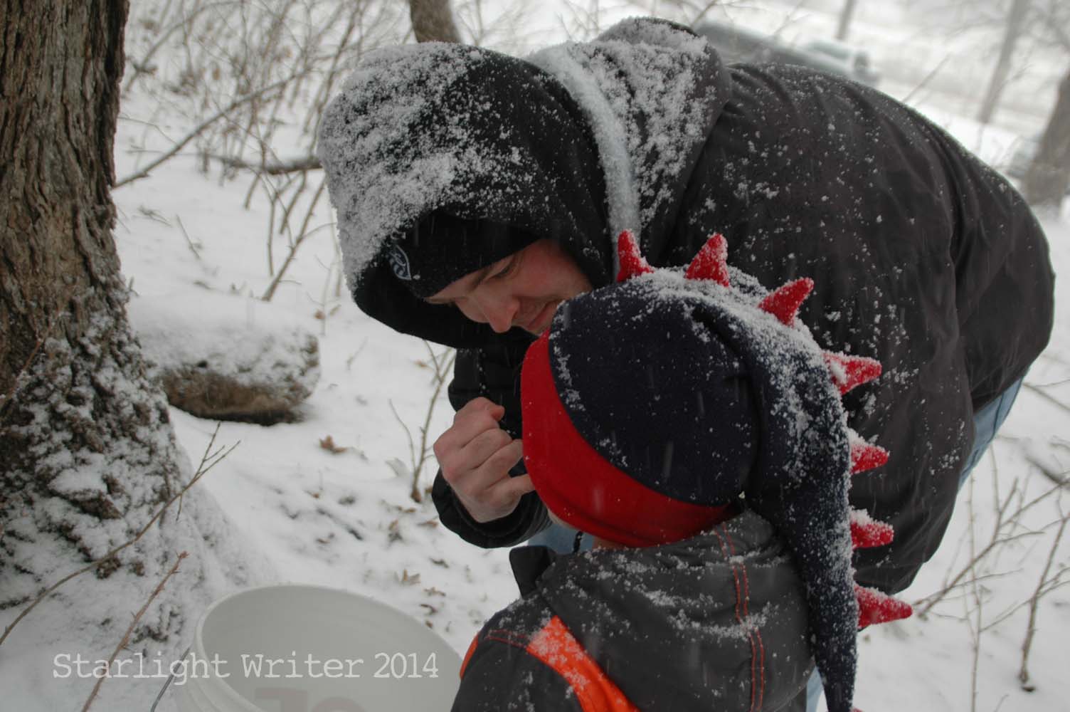 Everyone tastes a bit of the sweet sap. My youngest sips it right out of the tree. And this cute little guy, he gets a taste from his daddy’s finger.