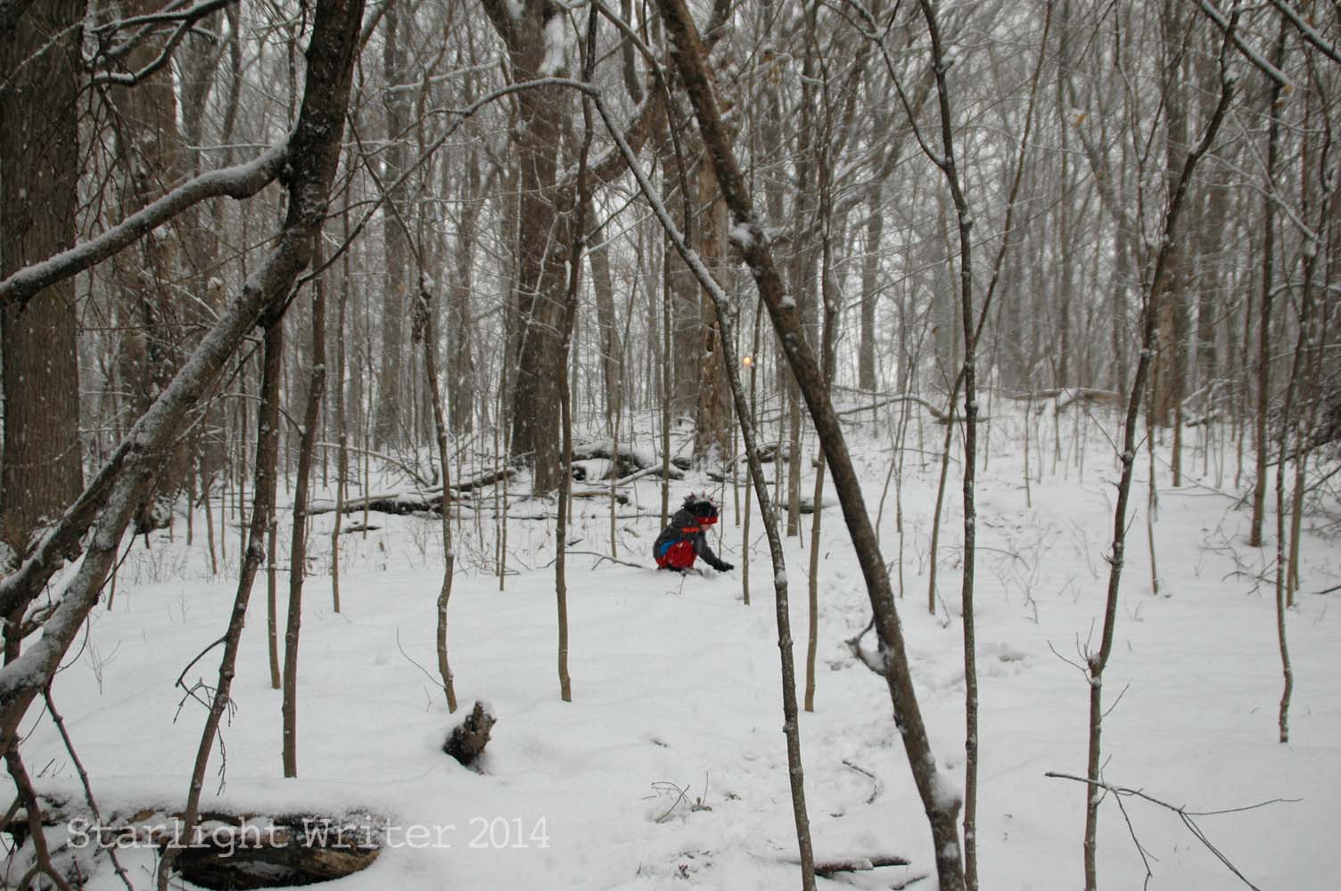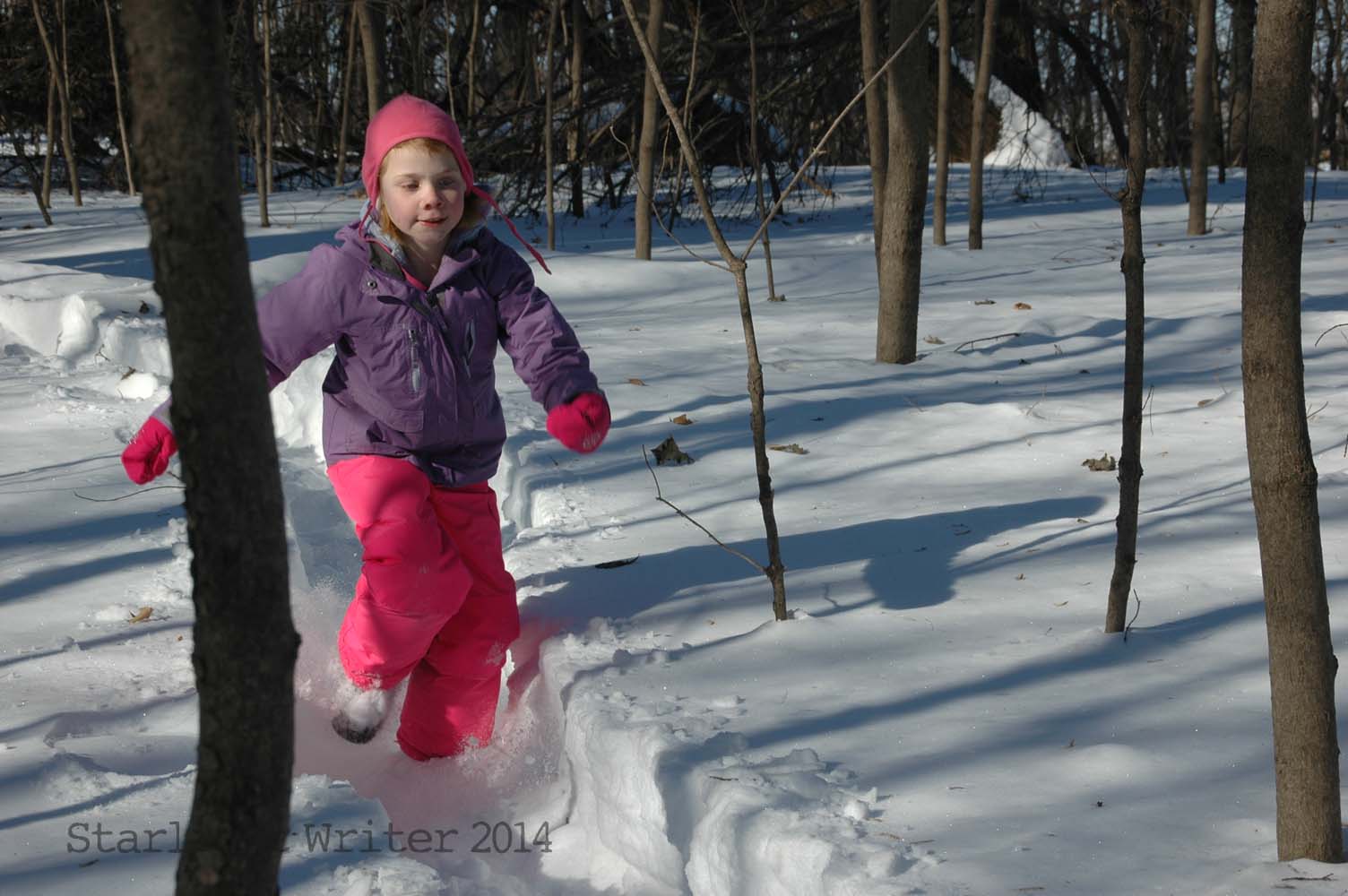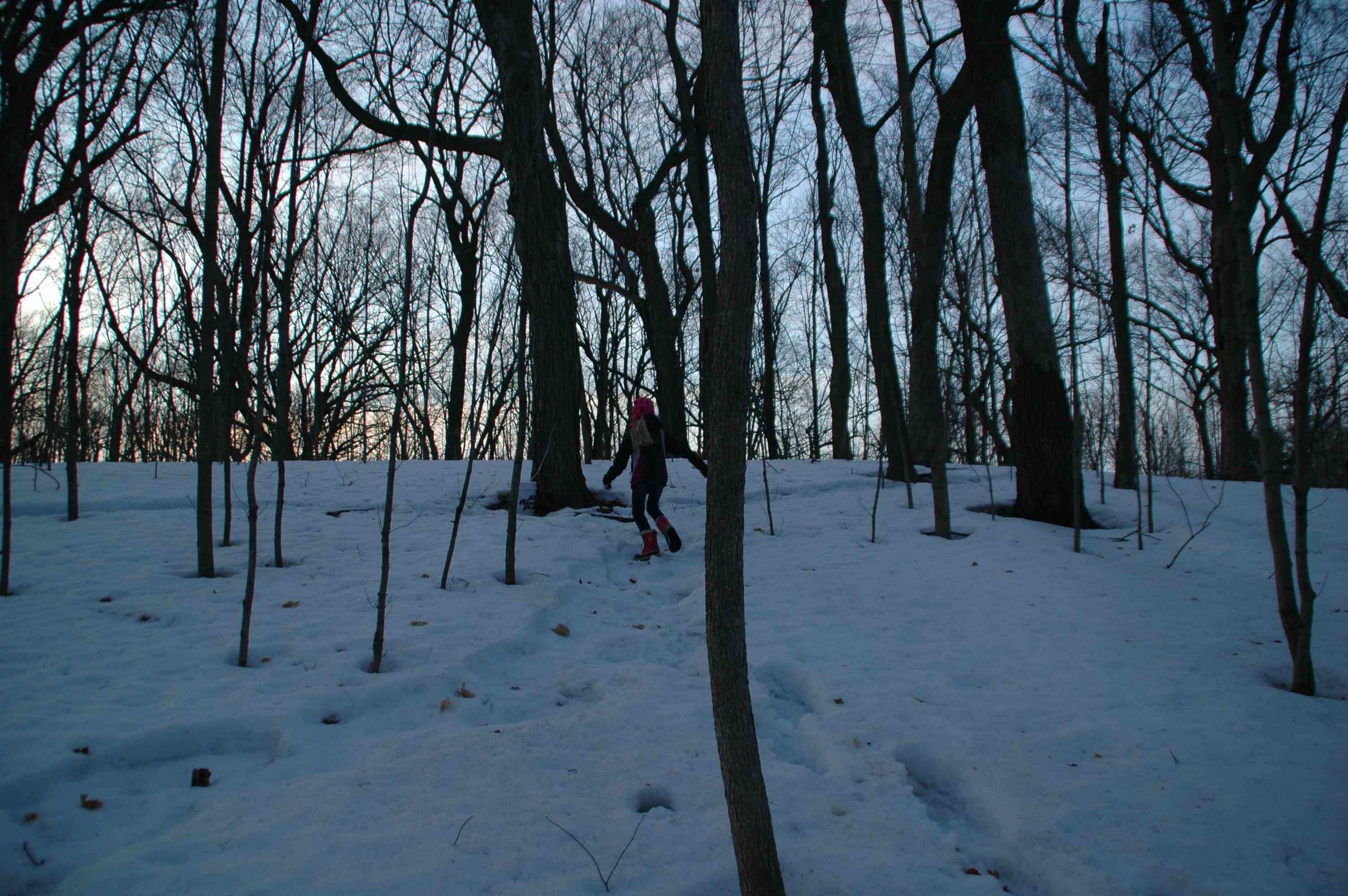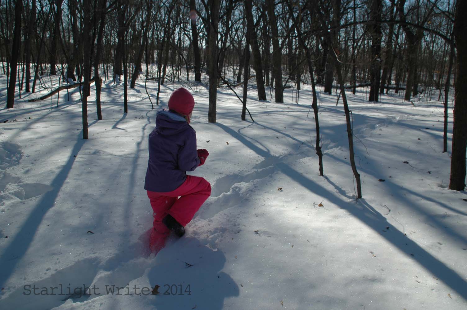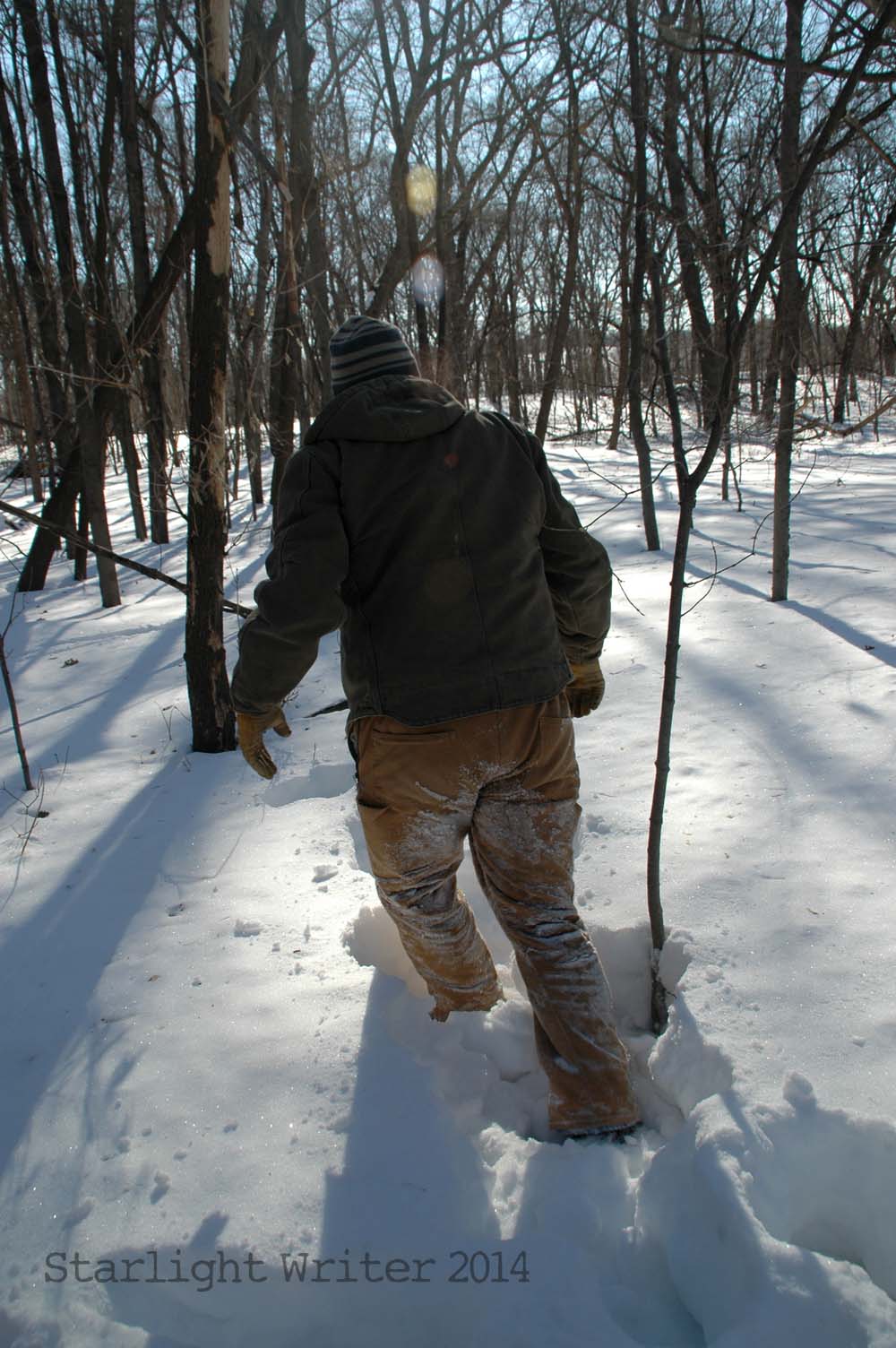 My oldest, she runs on to another tapped tree and excitedly reports that the bucket there is really, really heavy. Heavy with sap!