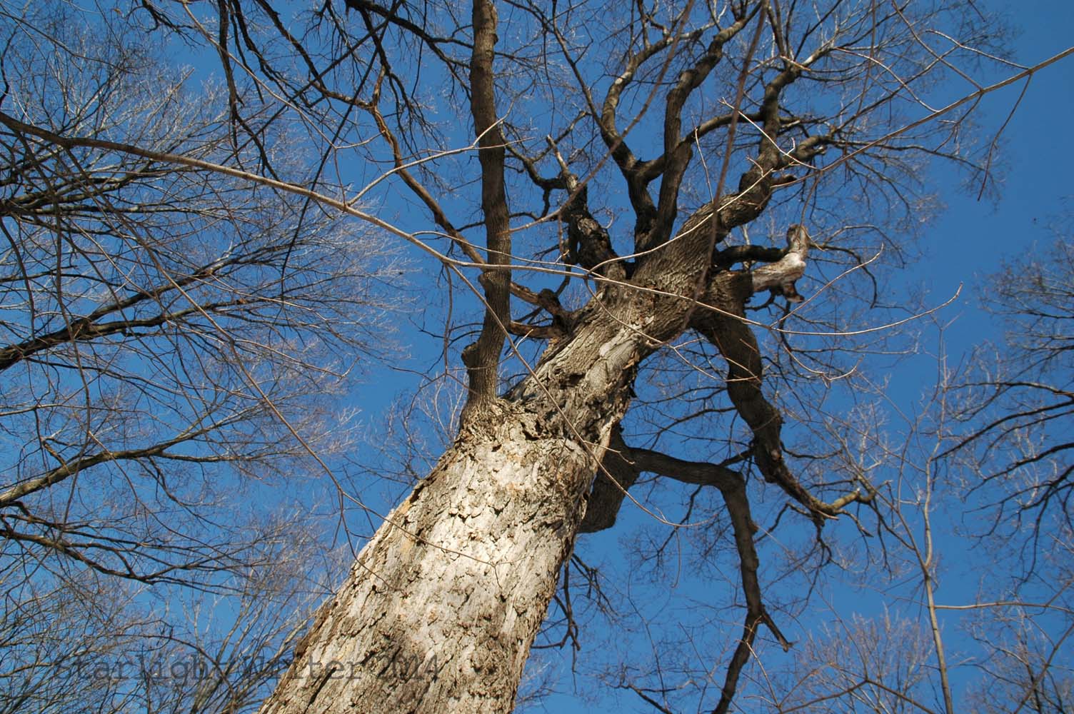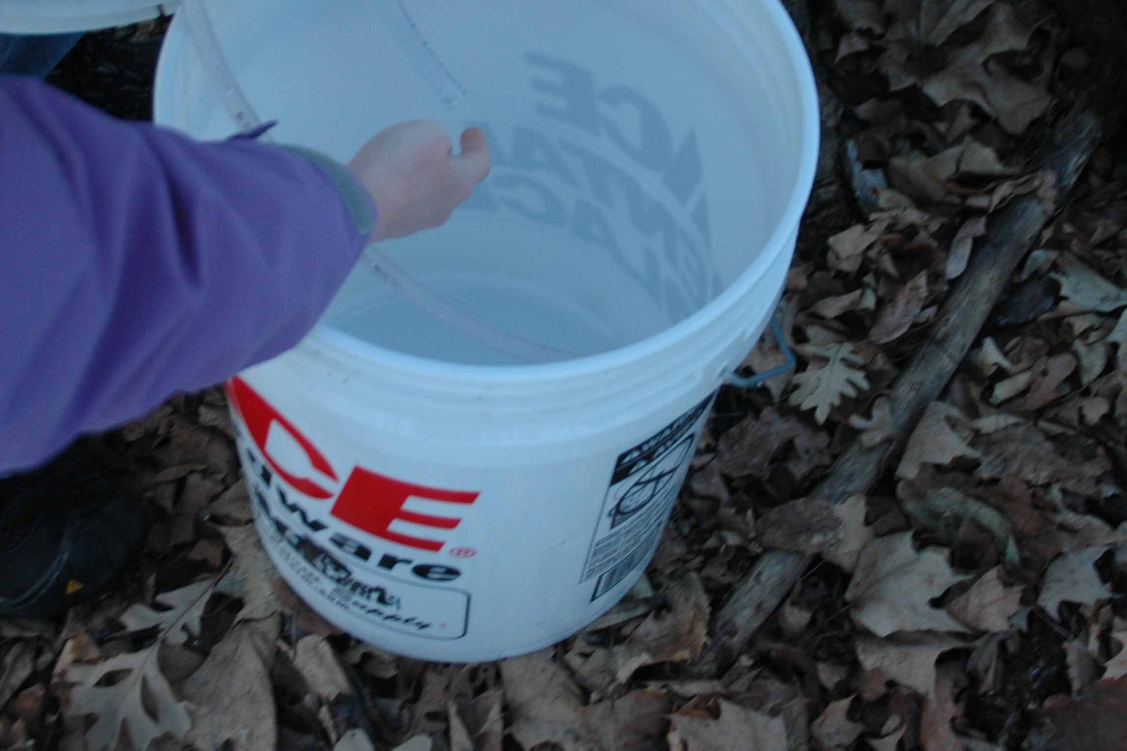 At each tapped tree, Mr. Masters removes the bucket lid, and we peer inside to marvel at all the sap. The 5-gallon bucket at this big tree filled up in just 24 hours!