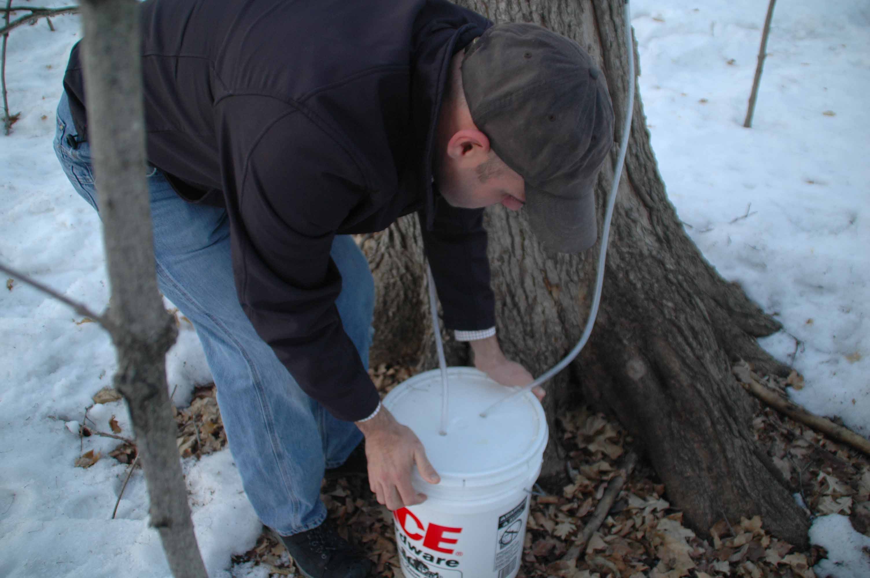 Then we go back into the woods and do it all over again. And again. And again. Altogether, we collect 50 gallons of sap in a little more than an hour.