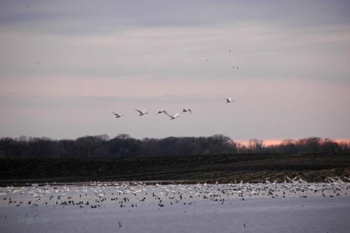Joining the swans are hundreds of mallard ducks and Canadian geese, too.