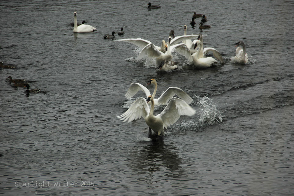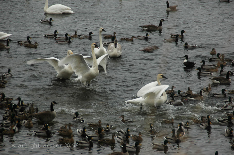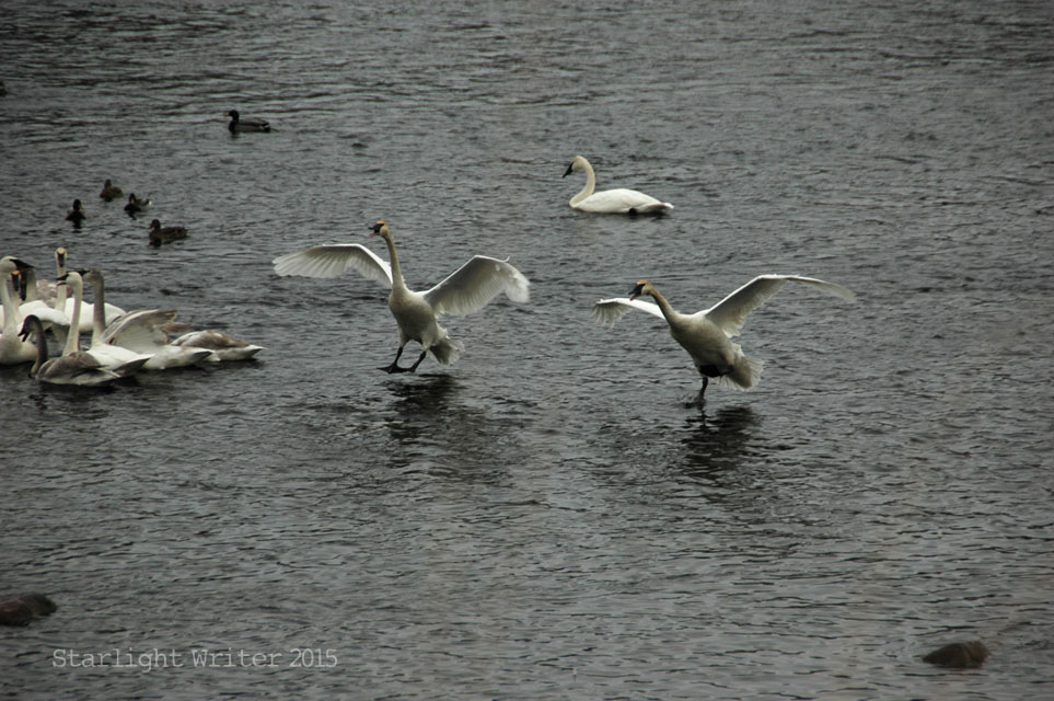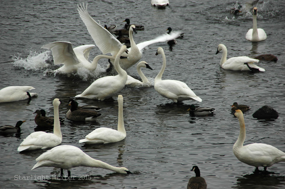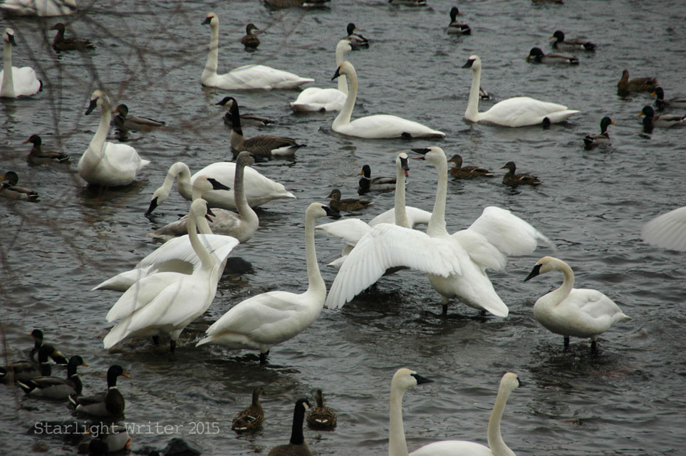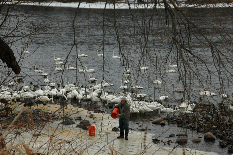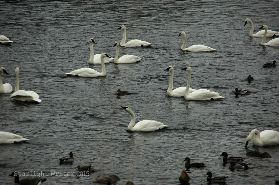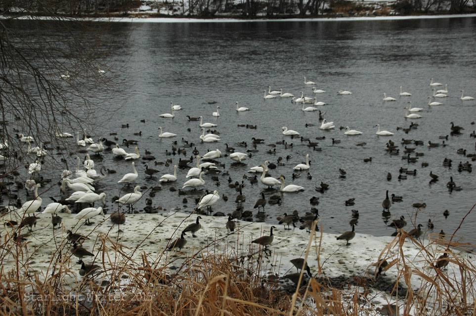 Knowing that history, it’s a miraculous, glorious sight to see so many swans. And yes, it’s cold just standing and watching.